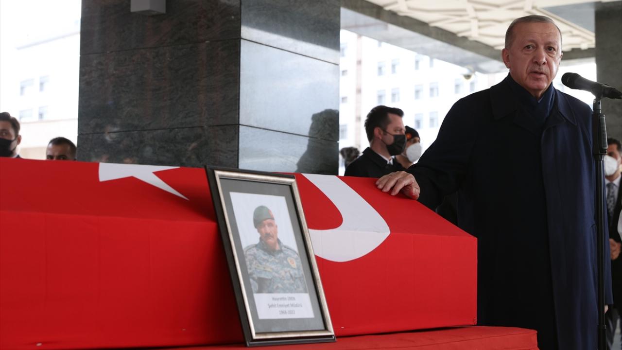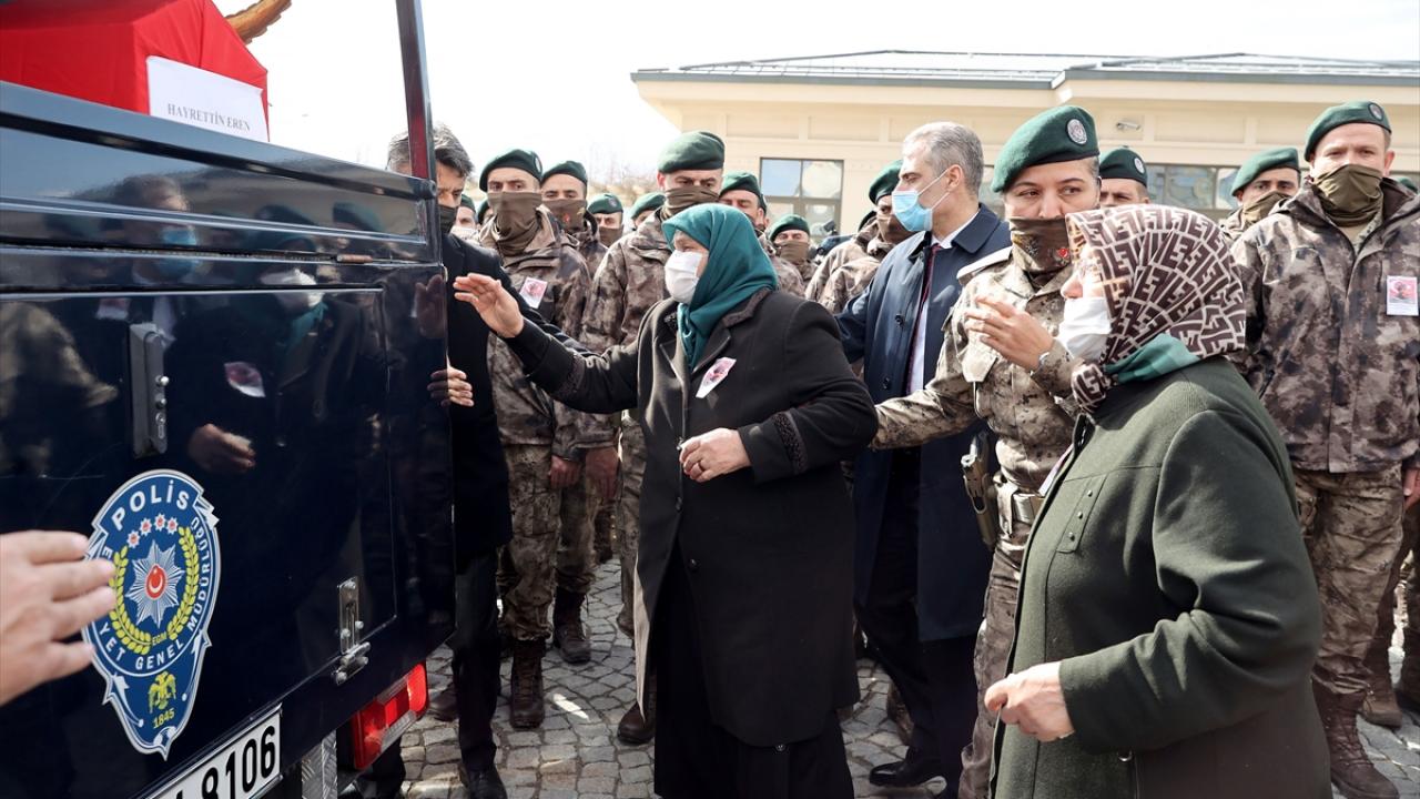 Cumhurbaşkanı Erdoğan`ın konuşmasının ardından Eren`in naaşı çevik kuvvet ve meslektaşlarının omuzlarında dualar eşliğinde cenaze arabasına taşındı.