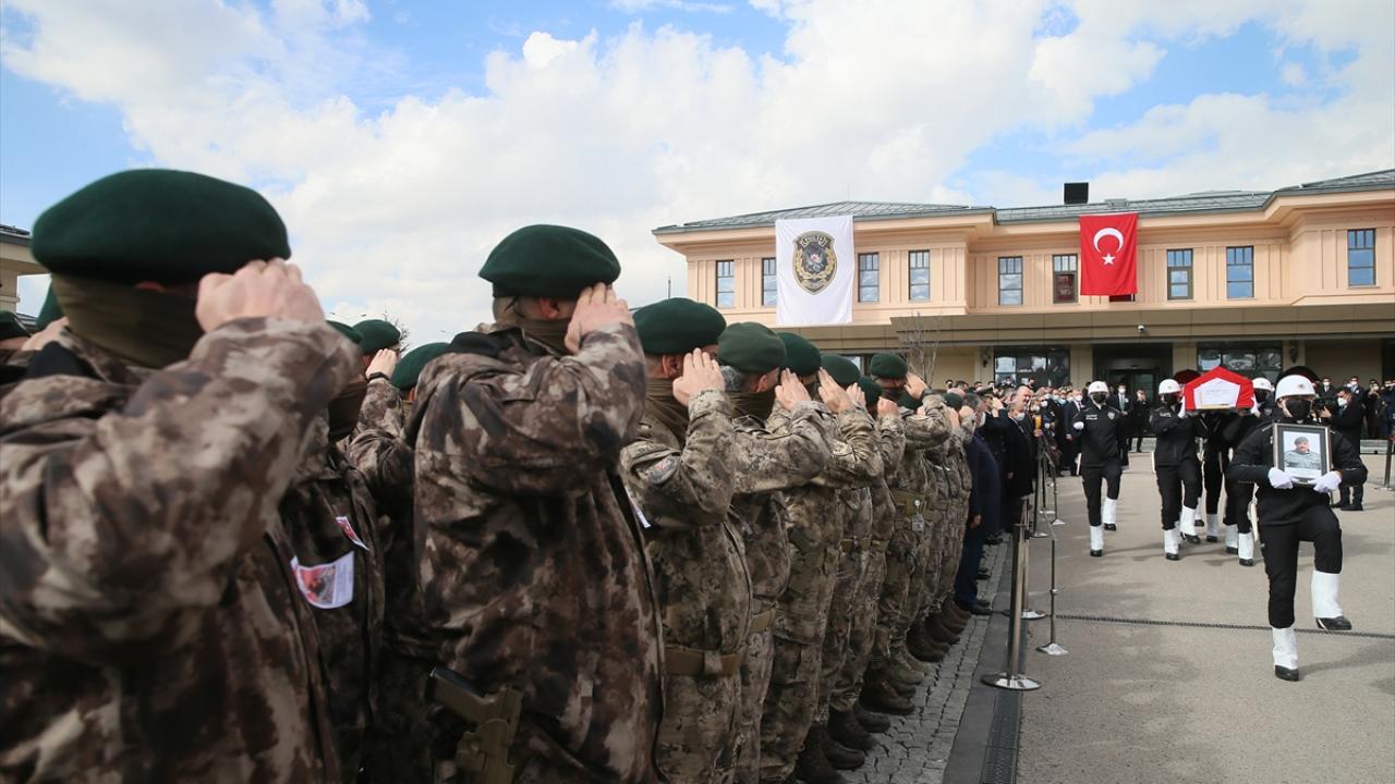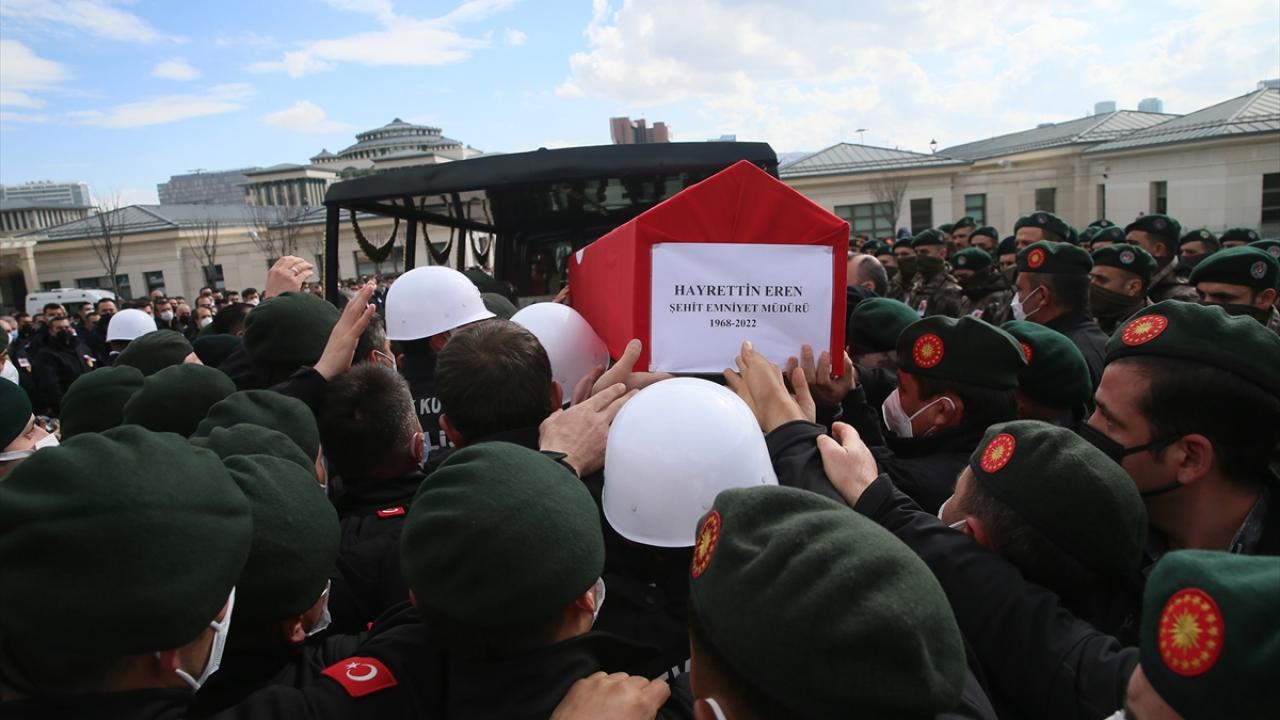 Cumhurbaşkanlığı Külliyesi Koruma Dairesi Başkanlığı önünde gerçekleştirilen törene Eren`in ailesi ve yakınları ile emniyet mensupları ve Eren`in mesai arkadaşları katıldı.