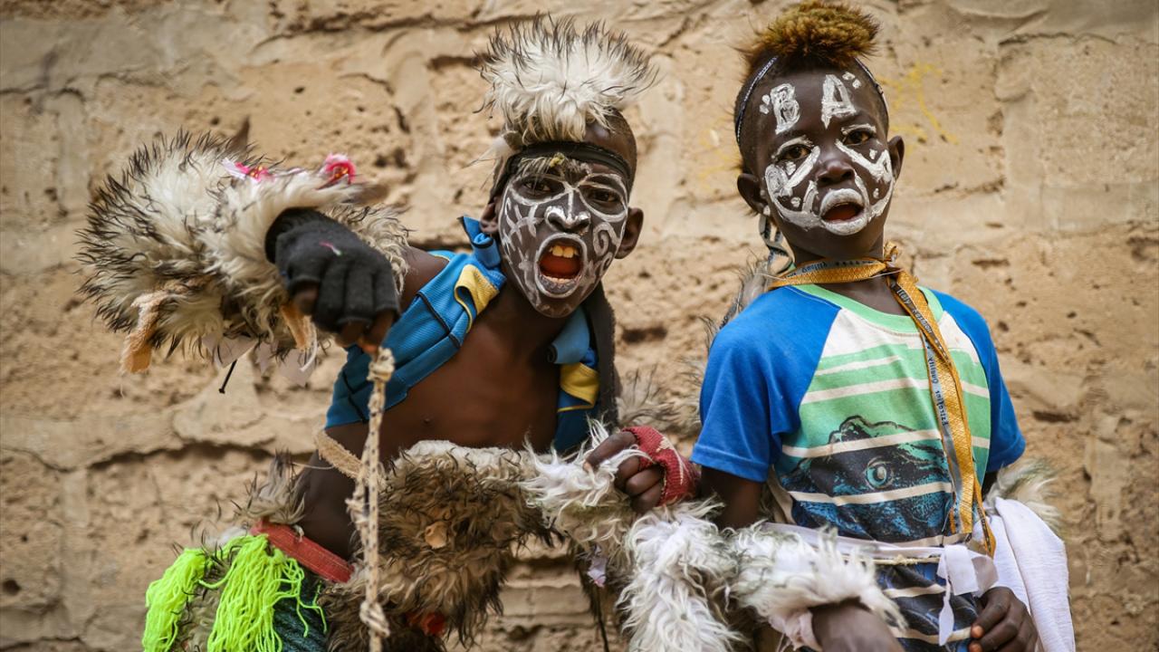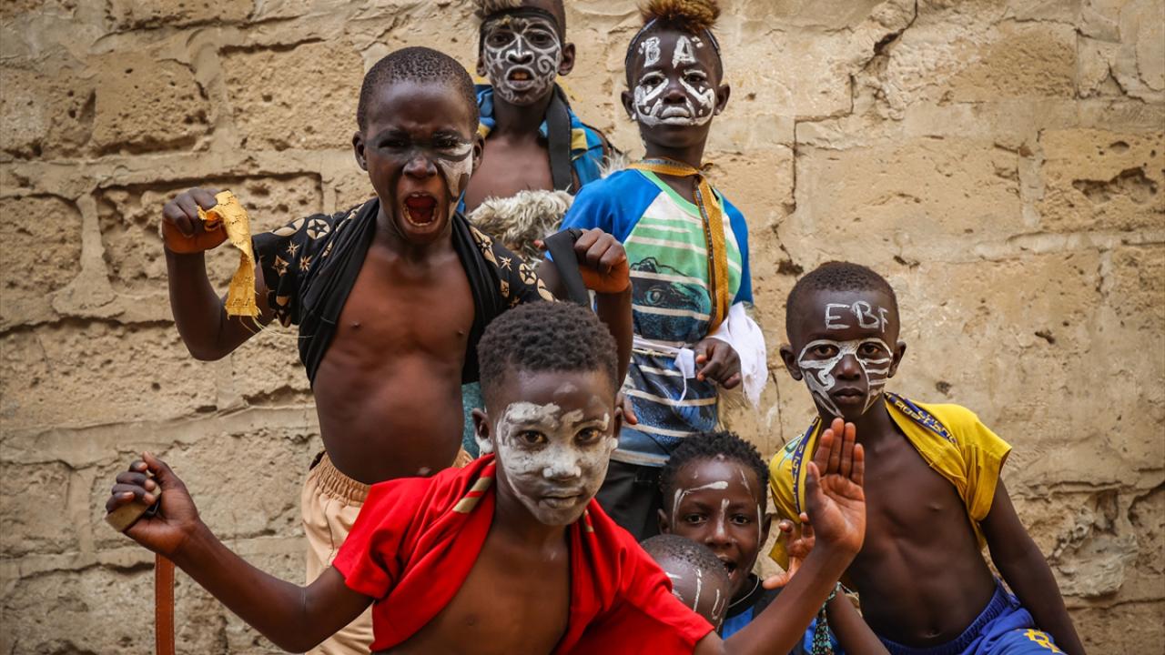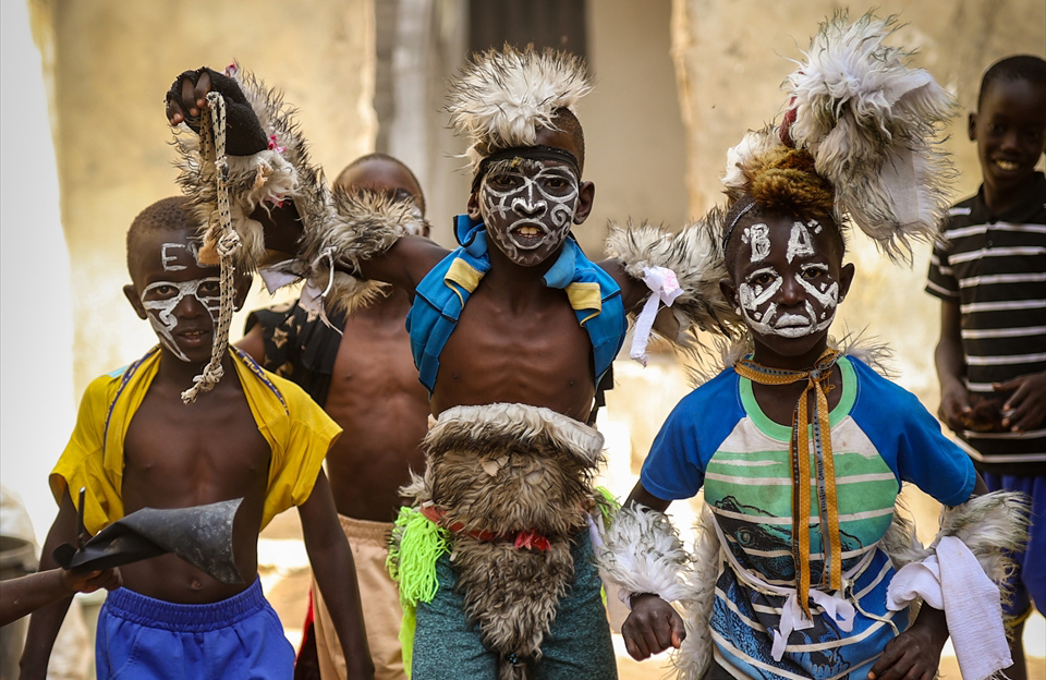 Paskalya tatilini fırsat bilen Dakar’ın Yoff semtindeki çocuklar, yüzlerini boyayıp tüylü kostümler giyerek sokaklarda dolaştı.