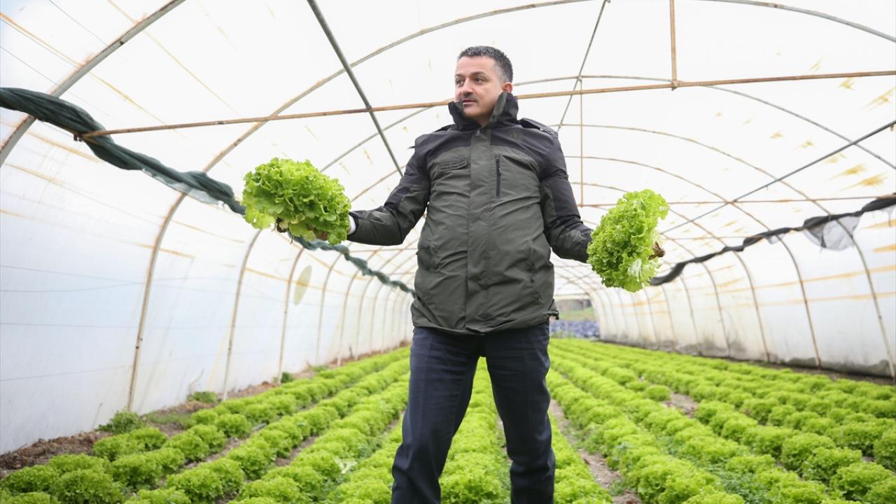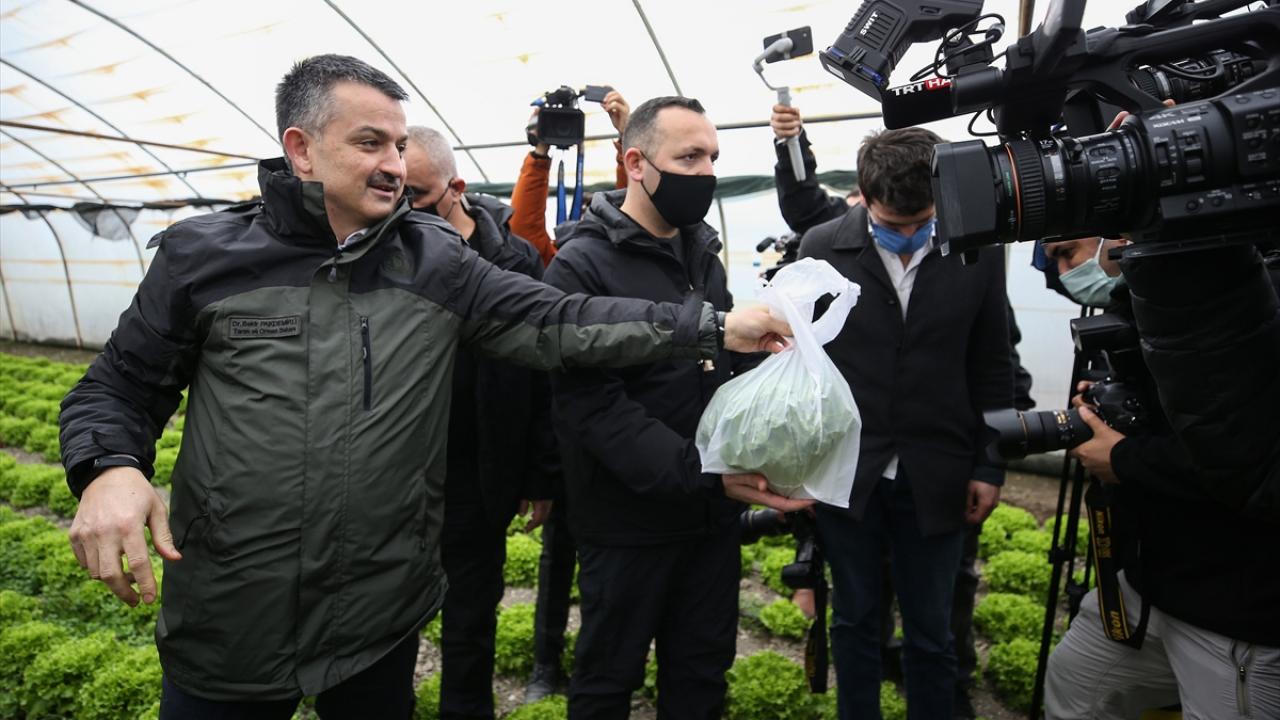 Kıvırcık serasında hasat yapan Pakdemirli, daha sonra Orman Köylerini Destekleme ve Yerinde Kalkındırma Projesi (ORKÖY) kapsamında destek alan köylülerle buluştu.