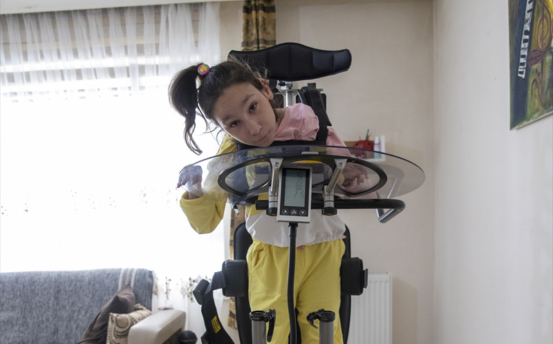 Doğum sırasında oksijensiz kaldığı için beyni hasar gören ve yürüme güçlüğü çeken Yaren`in hayatı 2 yıl önce Cumhurbaşkanı Recep Tayyip Erdoğan`ın hediye ettiği robotik cihaz sayesinde değişti.
