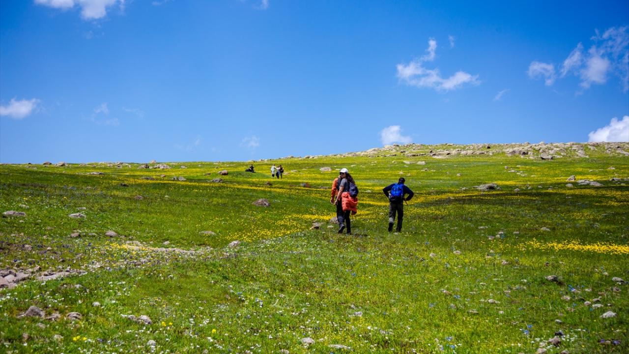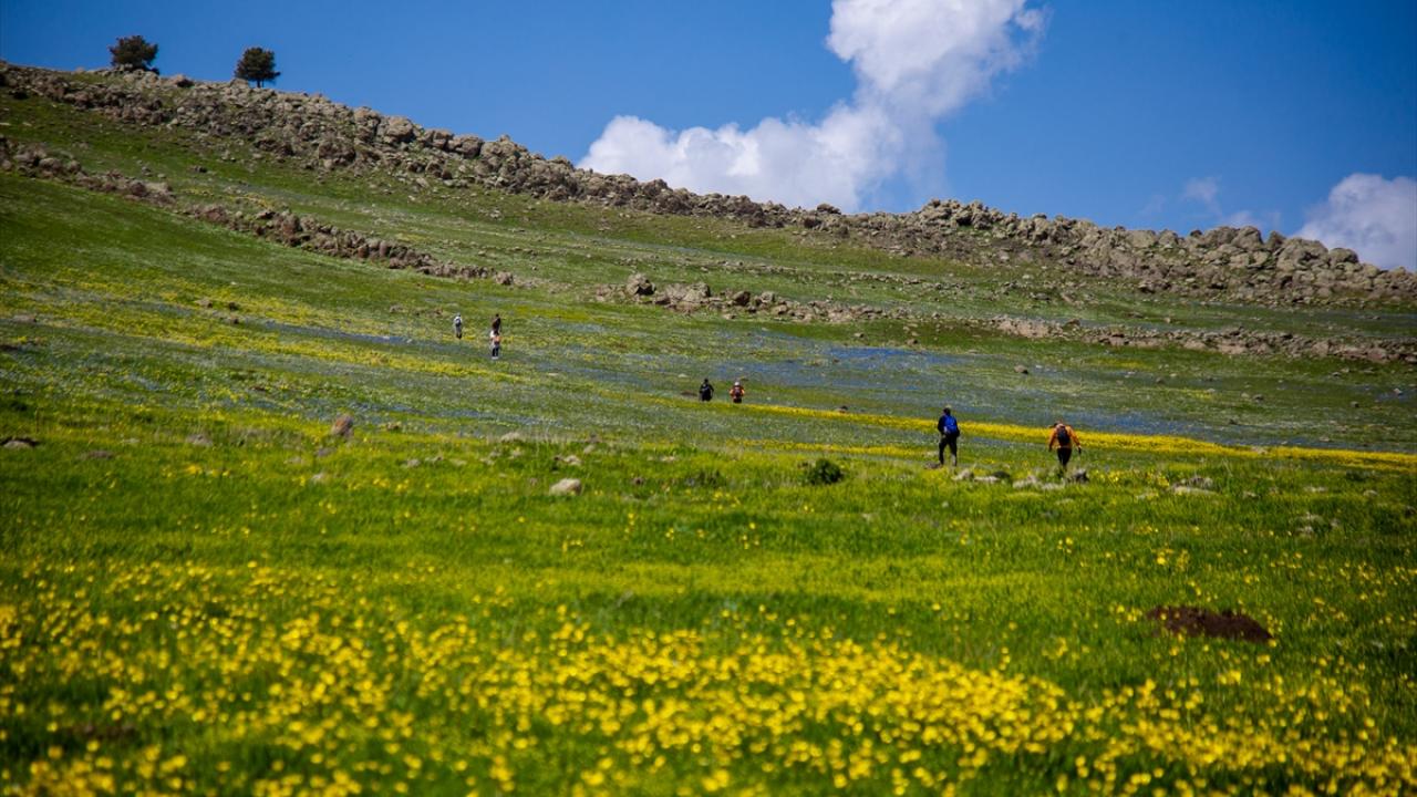 Yağışlarla canlanan tepelerde doğayla baş başa vakit geçiren ve piknik yapan dağcılar, günü 14 kilometrelik yürüyüşle tamamladı.