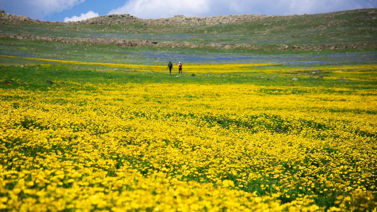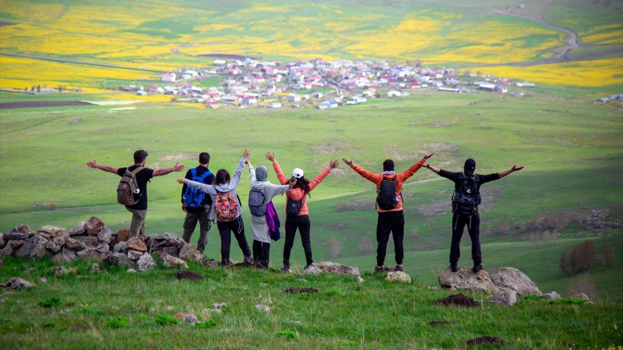 Türkiye Dağcılık Federasyonunun Ardahan`daki üyelerinden oluşan 9 kişilik grup, bahar renklerinin hakim olduğu bölgede doğa yürüyüşü yaptı.