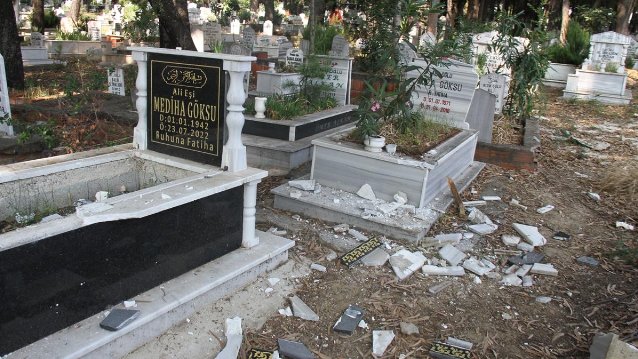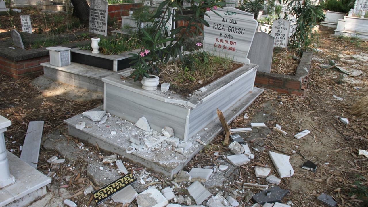 Sabah saatlerinde Cumalı mahallesi mezarlığındaki 12 mezarın taşlarına zarar verilmesi üzerine başlatılan soruşturma kapsamında, şüpheli H.S. polis ekiplerince yakalandı.