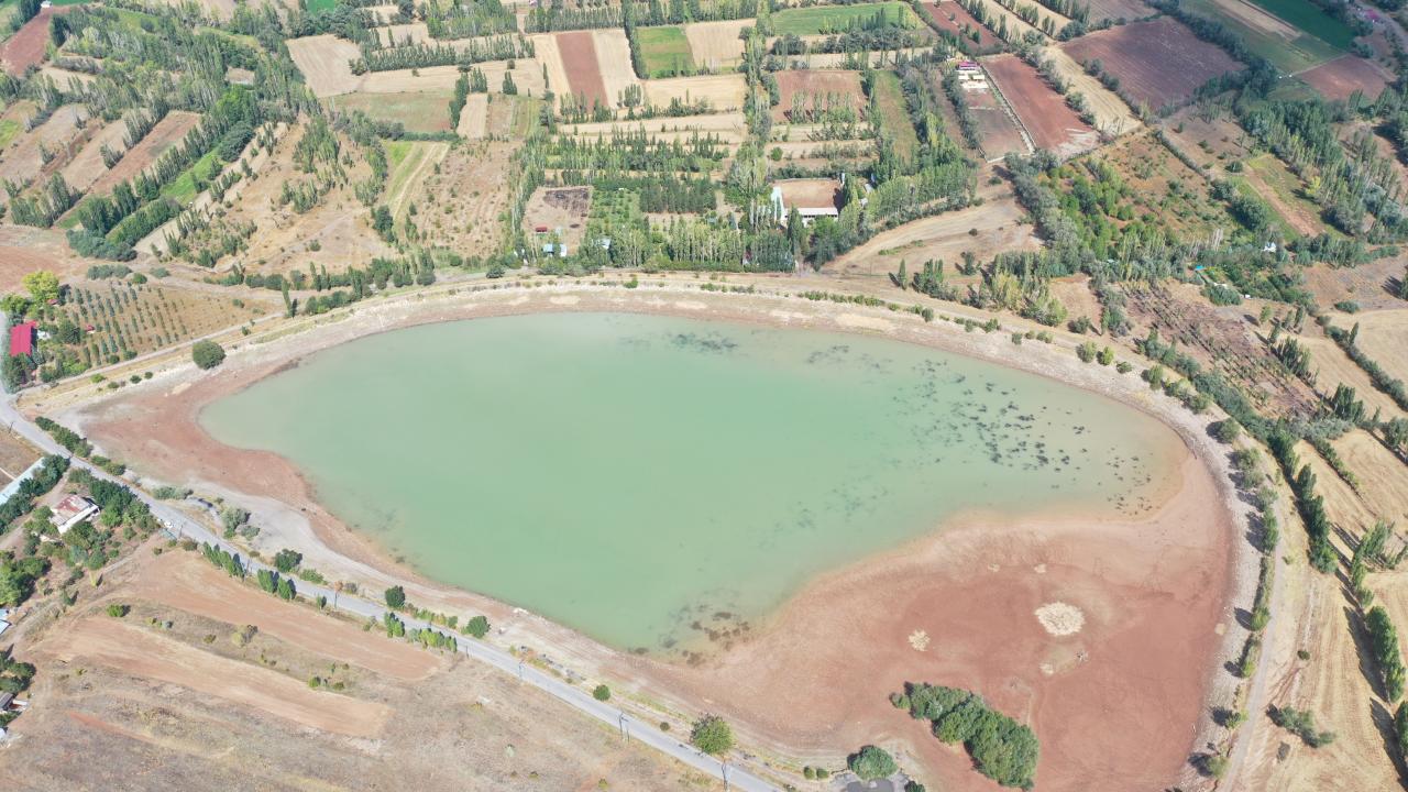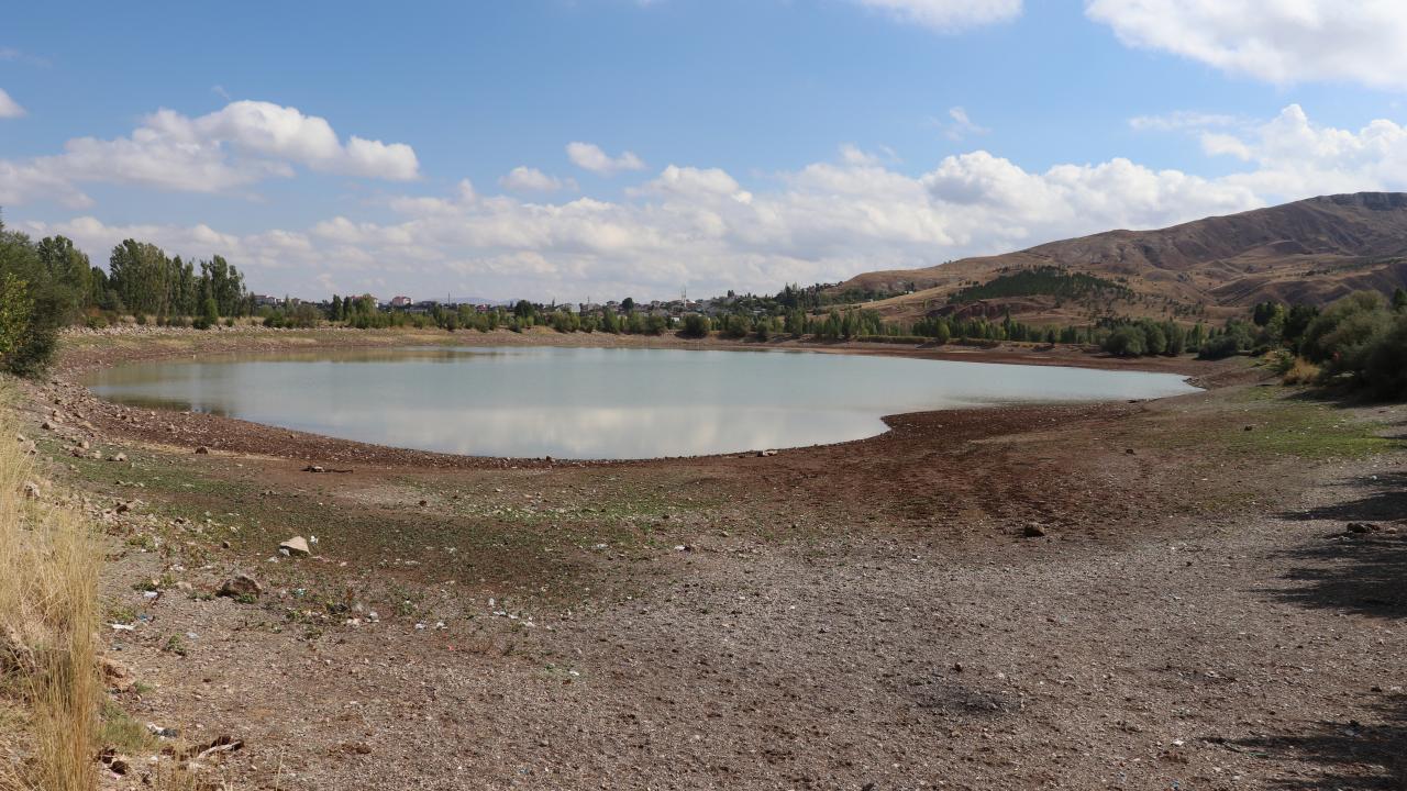 Sivas'ta bulunan Serpincik Göleti'nin su seviyesinde kuraklığın etkisiyle çekilme oldu.