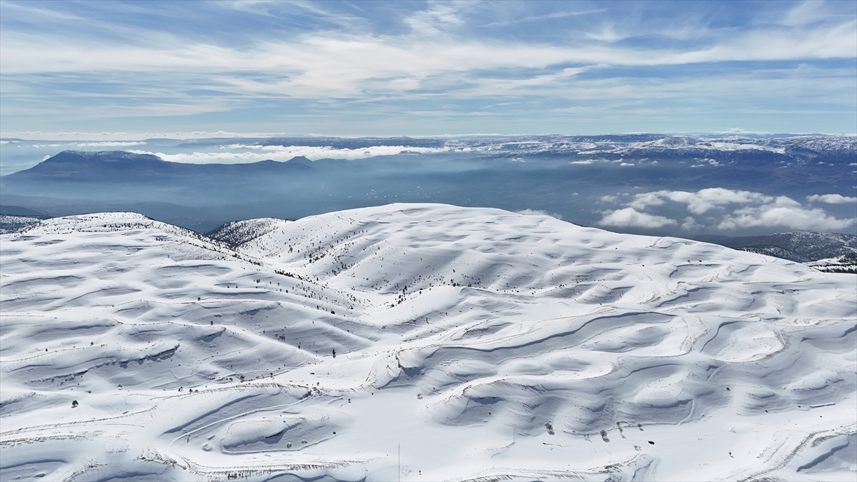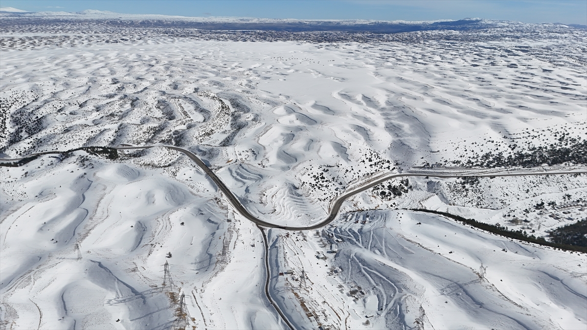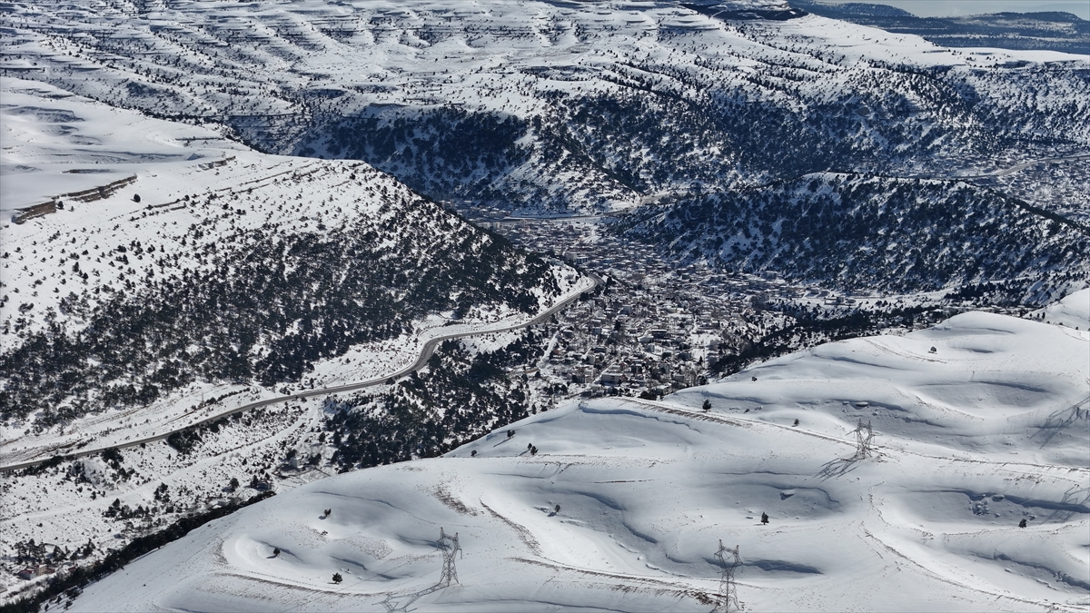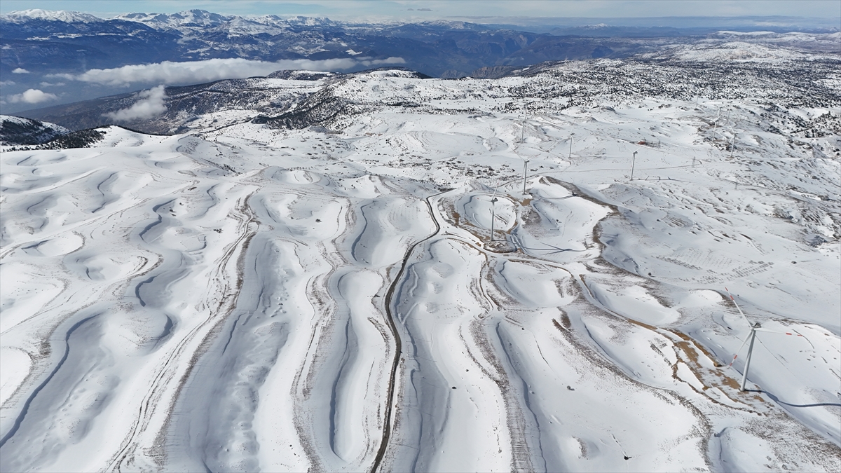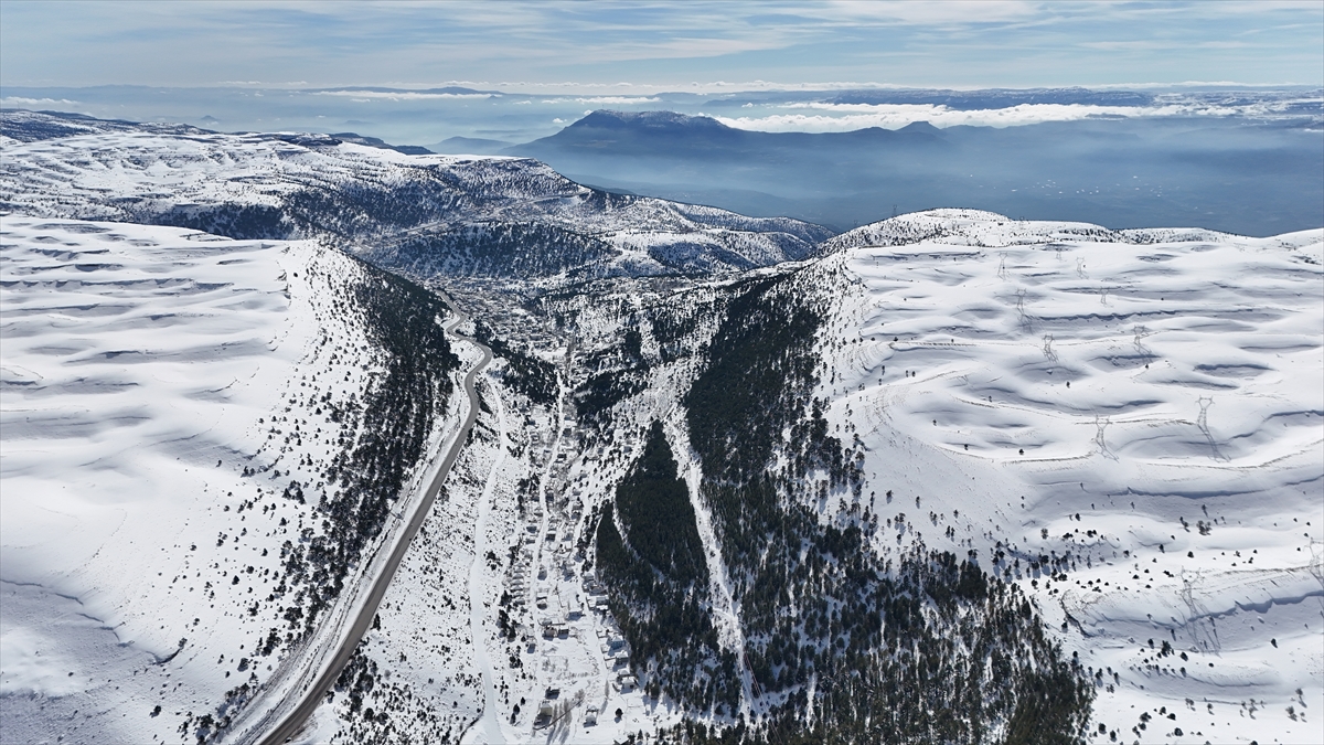 Sertavul Geçidi'nde kar manzarası havadan görüntülendi