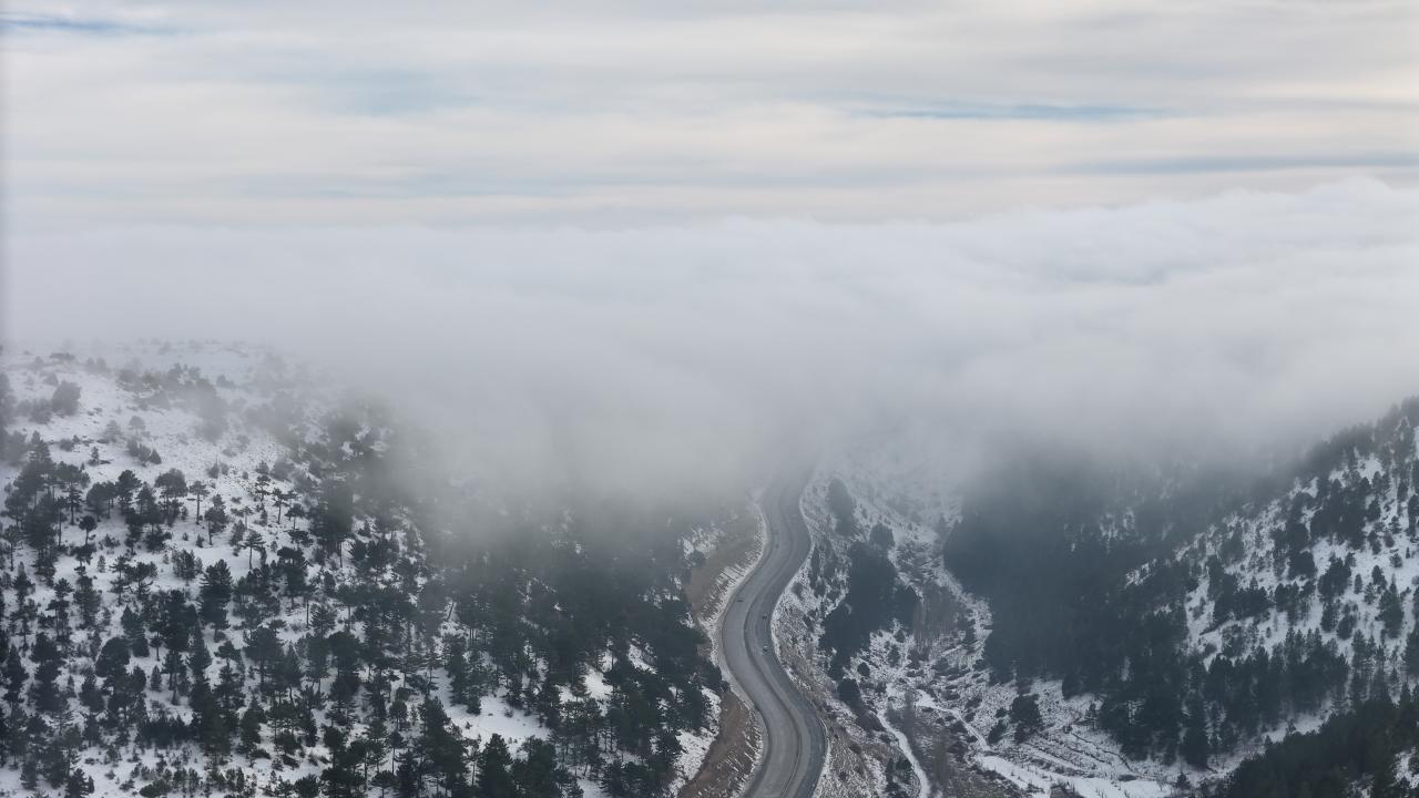 Sertavul Geçidi'ndeki kar ve sis havadan görüntülendi