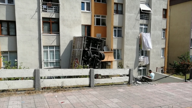 Zonguldak'ta apartman boşluğuna düşen kamyonetin sürücüsü yaralandı