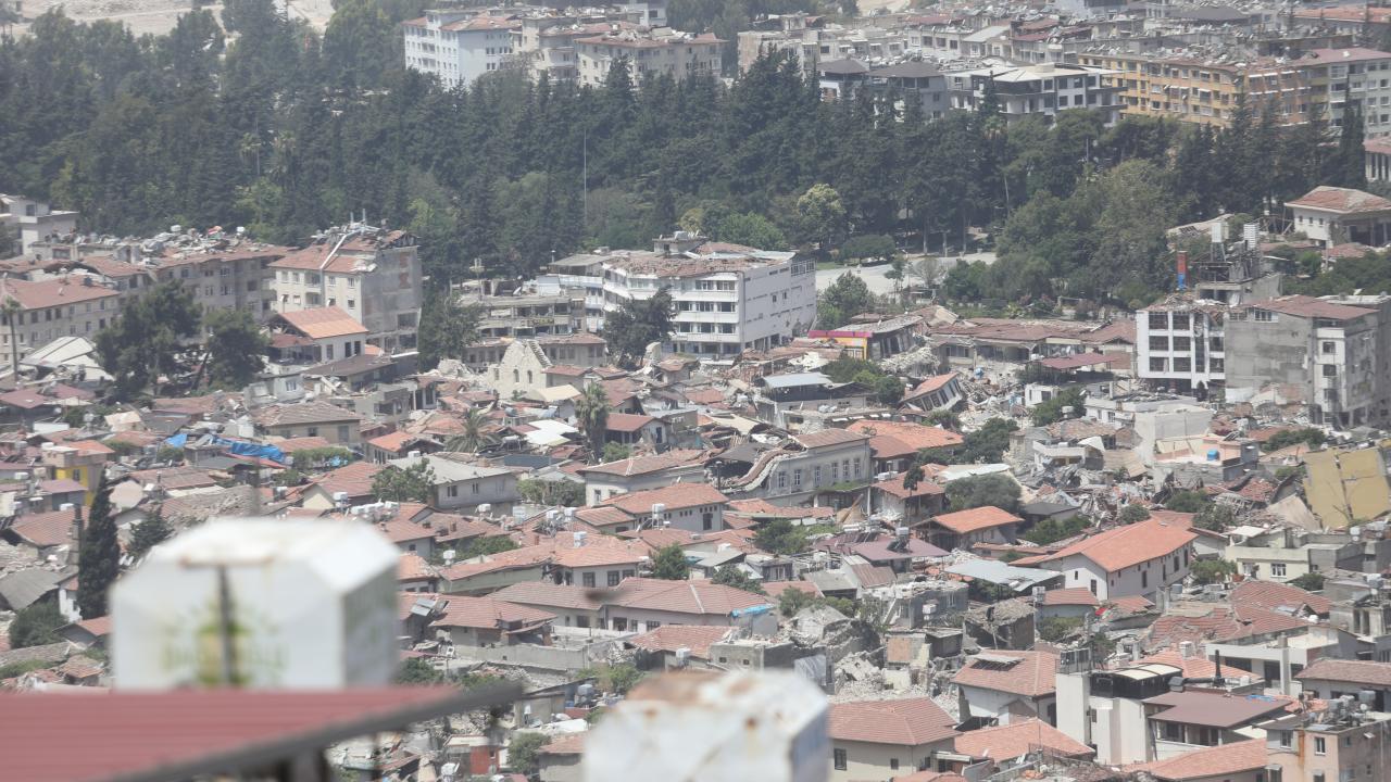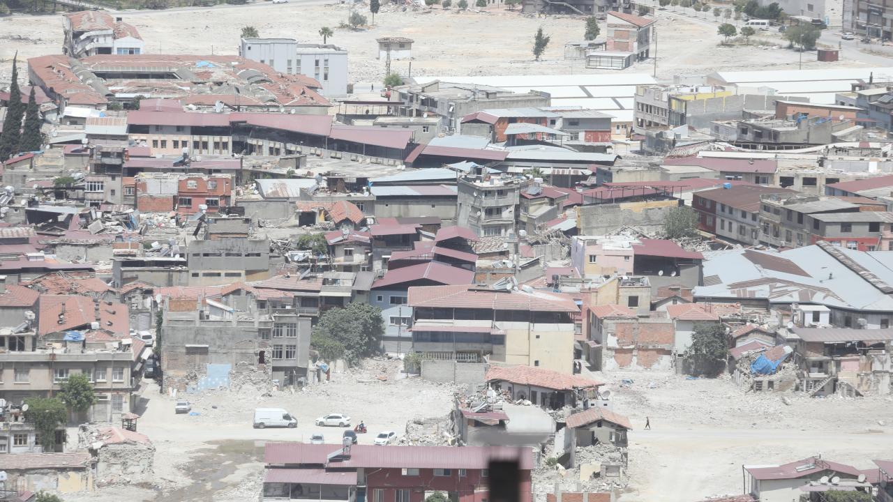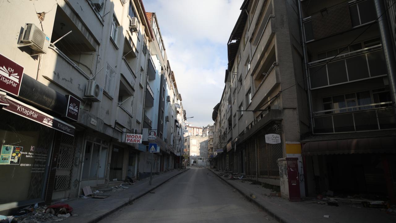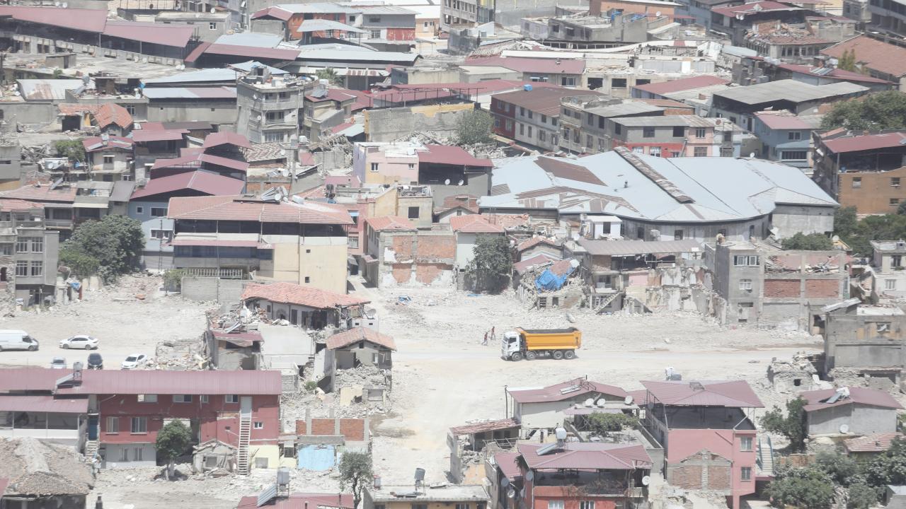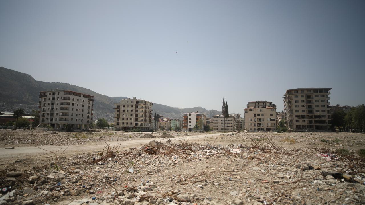 Antakya`da enkazın kaldırılmasıyla oluşan boşluklar göze çarpıyor. Ağır hasarlı binalar ise yıkım işlemlerini bekliyor.