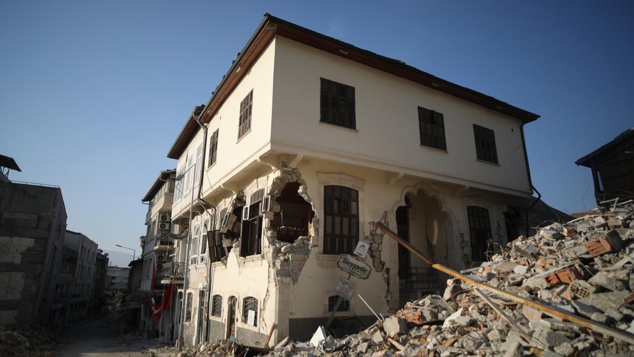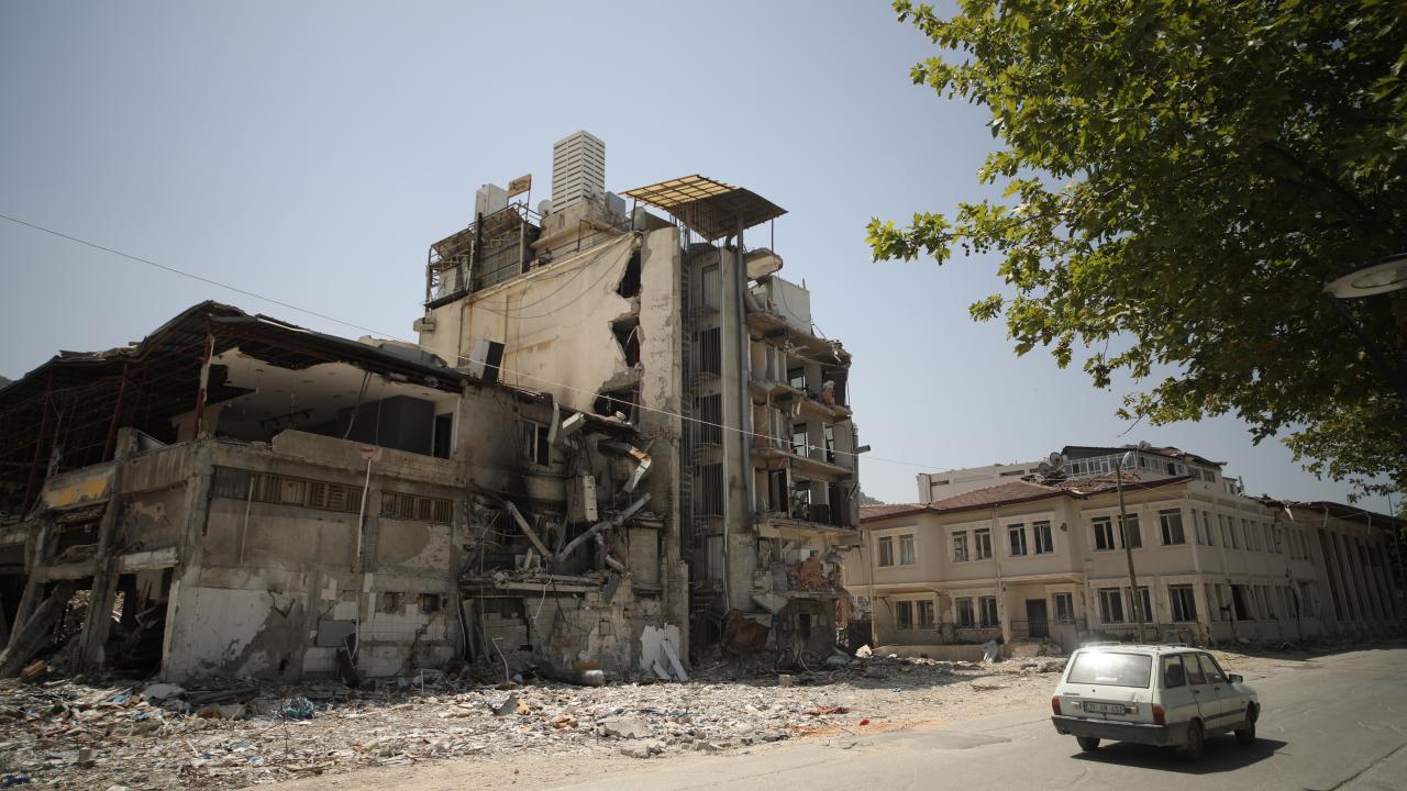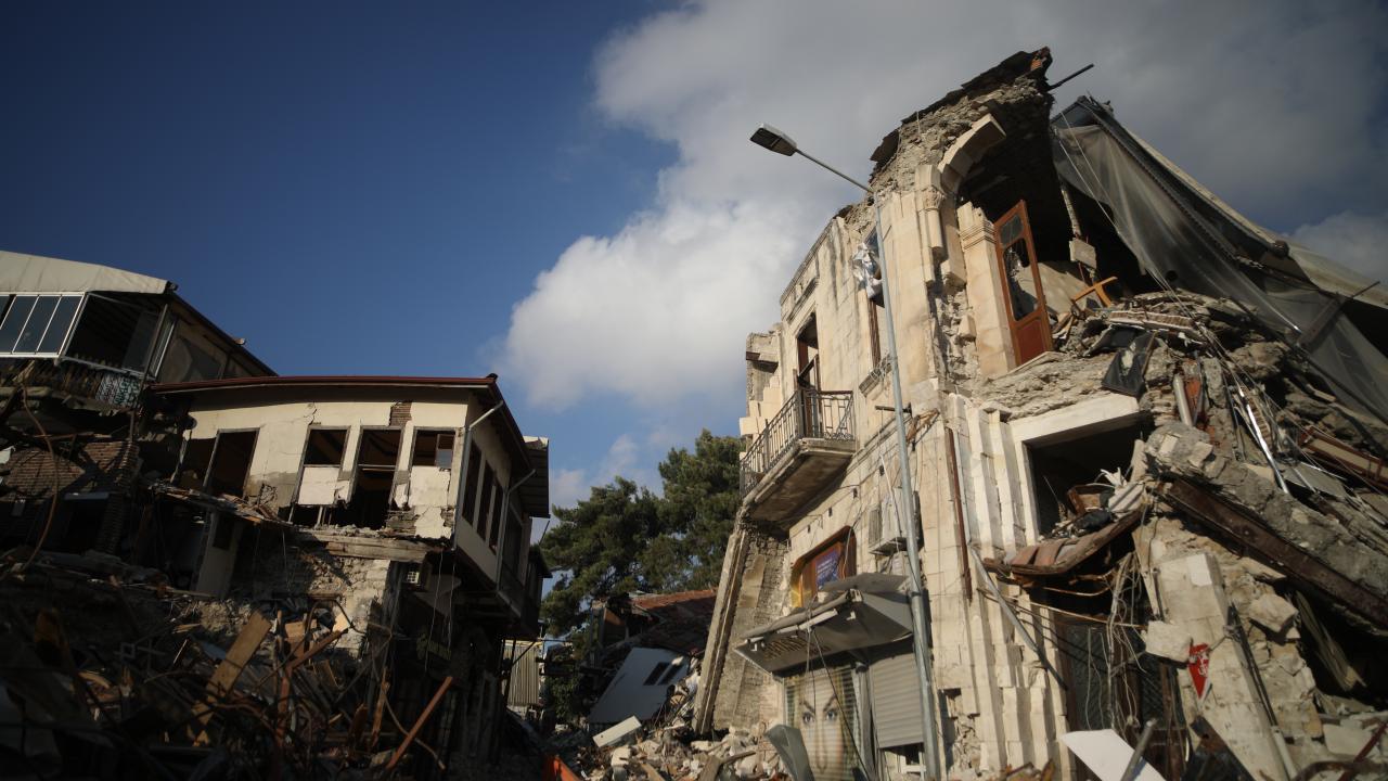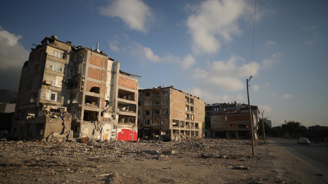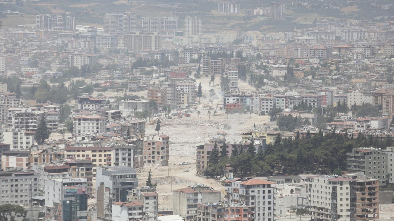 Antakya`da enkazın kaldırılmasıyla oluşan boşluklar göze çarpıyor. Ağır hasarlı binalar ise yıkım işlemlerini bekliyor.