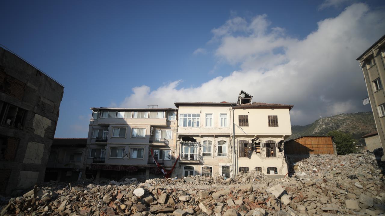 İlçe merkezinde yer alan yapıların tamamına yakını ağır hasarlı halde ayakta duruyor.