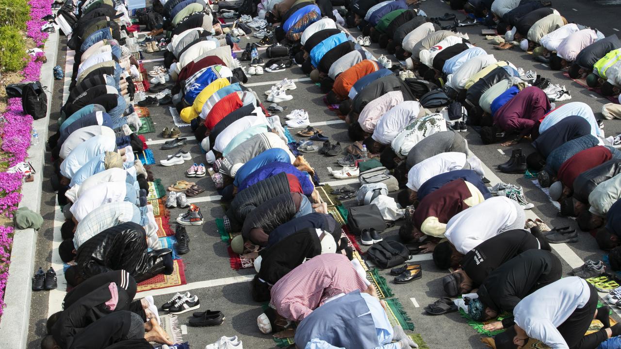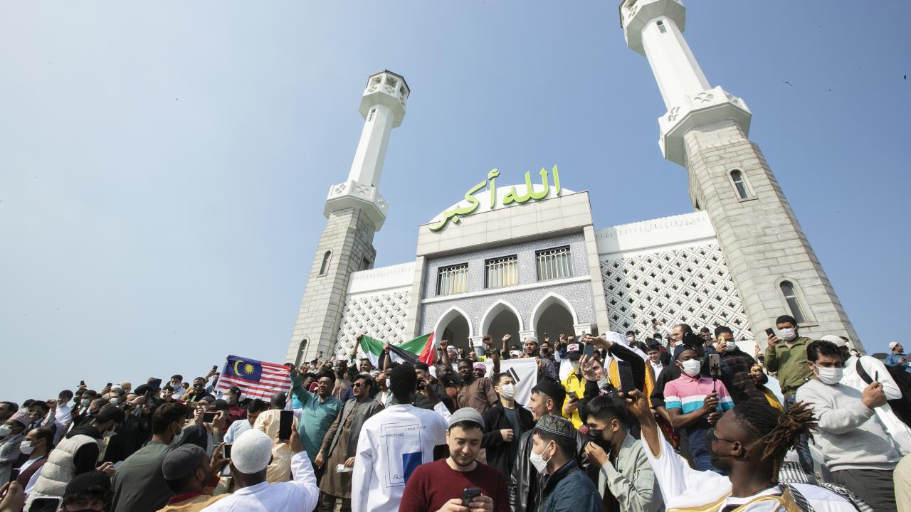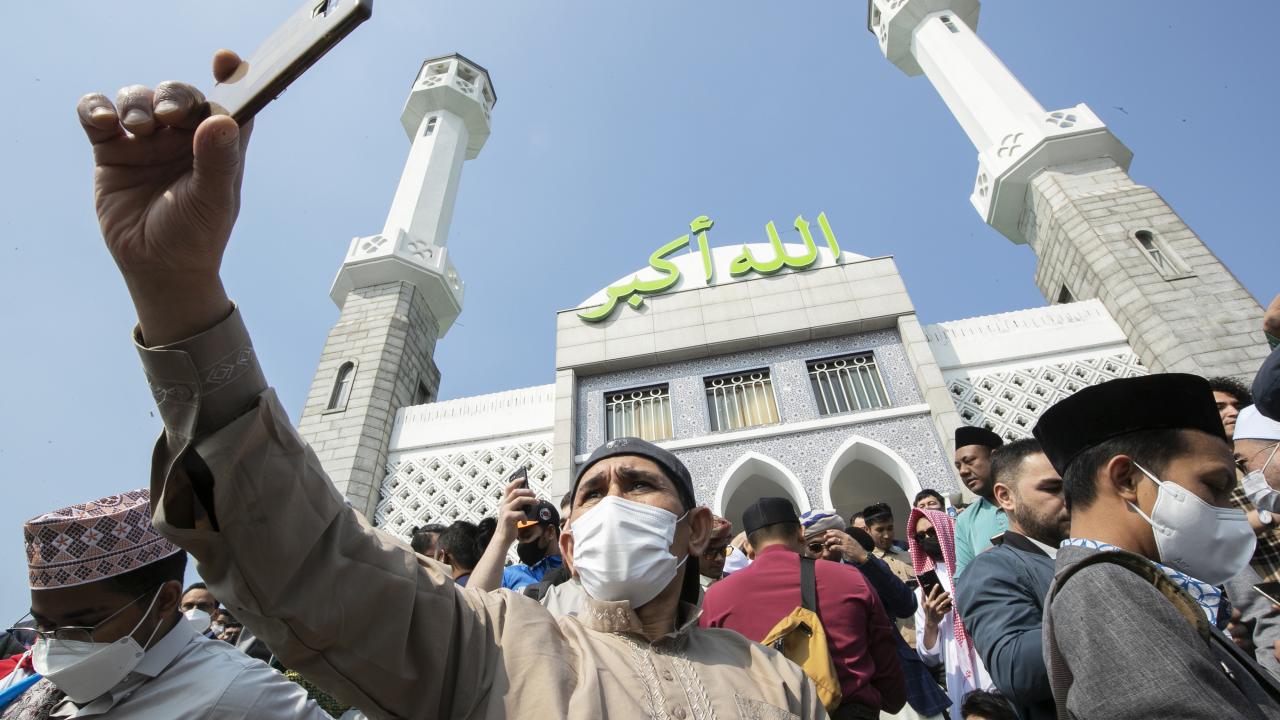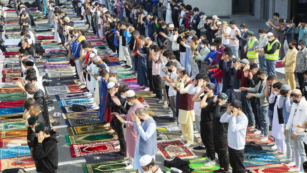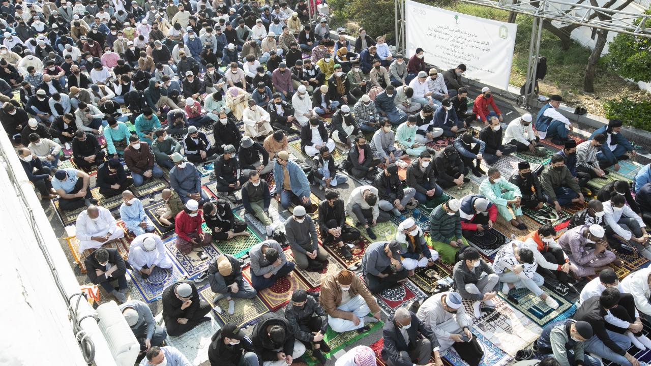 Güney Kore'nin başkenti Seul'de yaşayan Müslümanlar, Seul Merkez Camii'ne gelerek Ramazan Bayramı namazını eda etti.