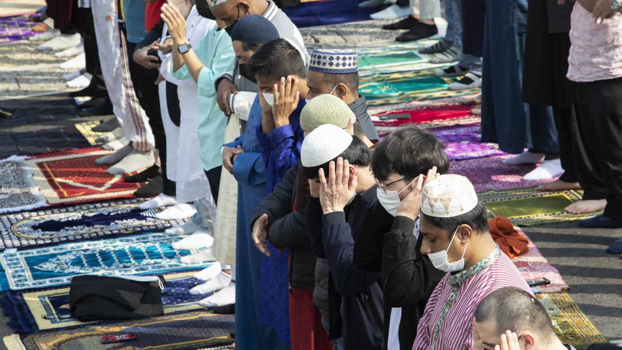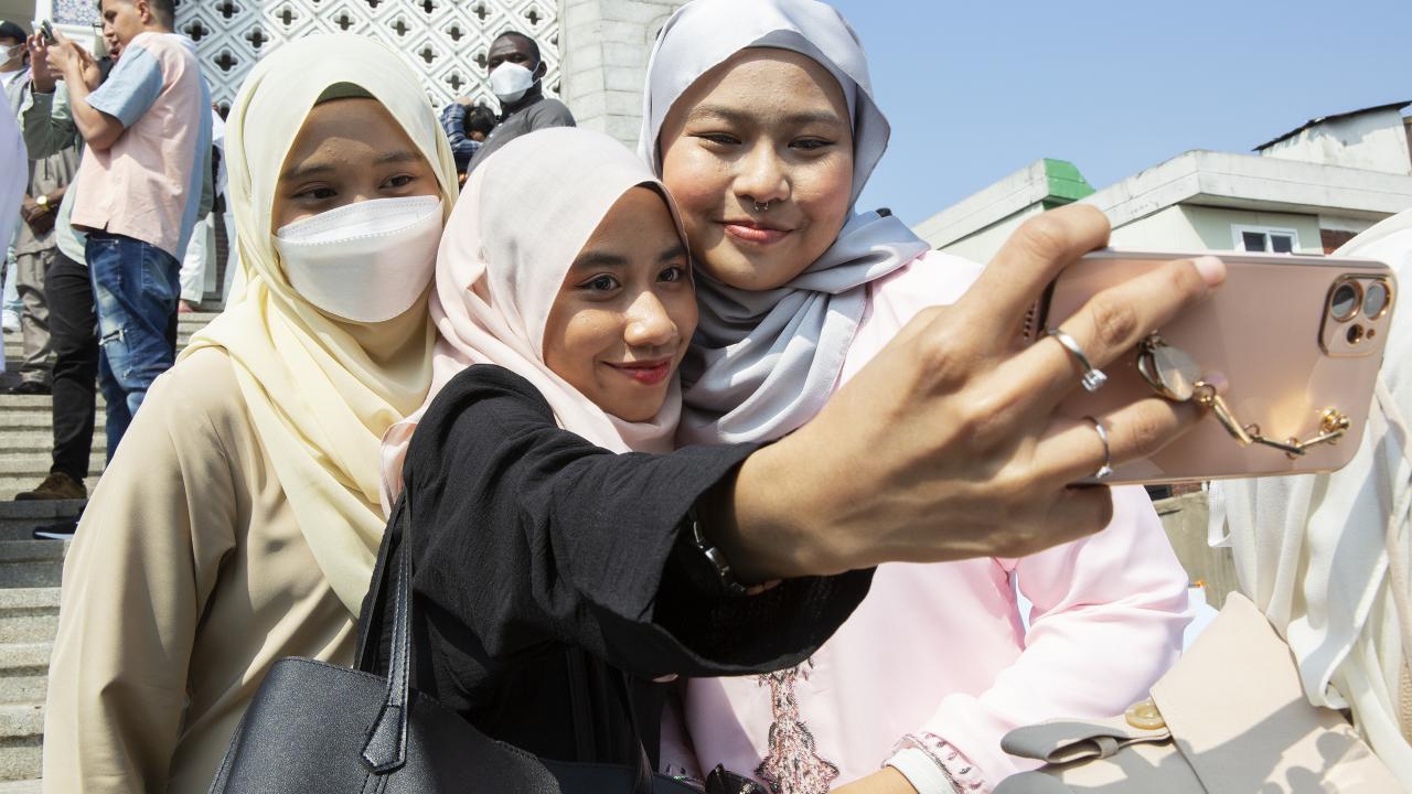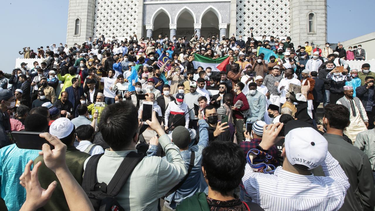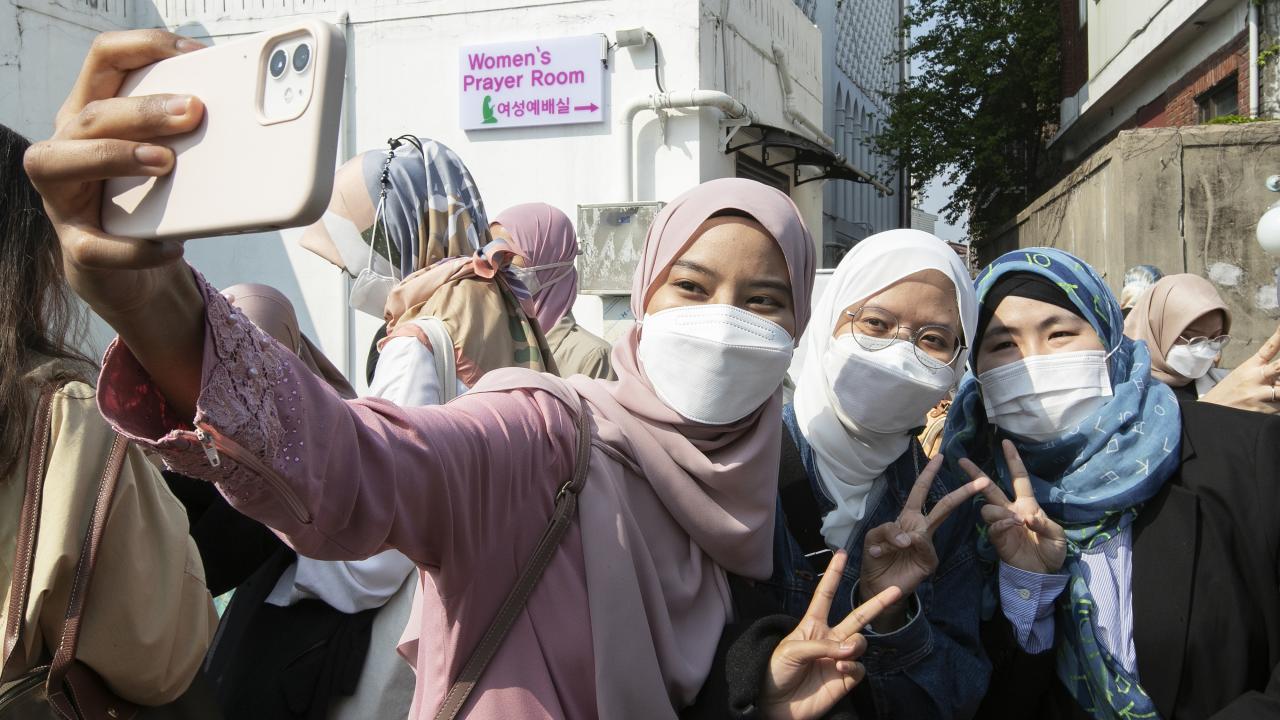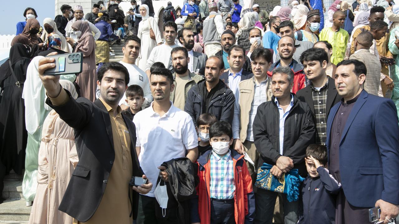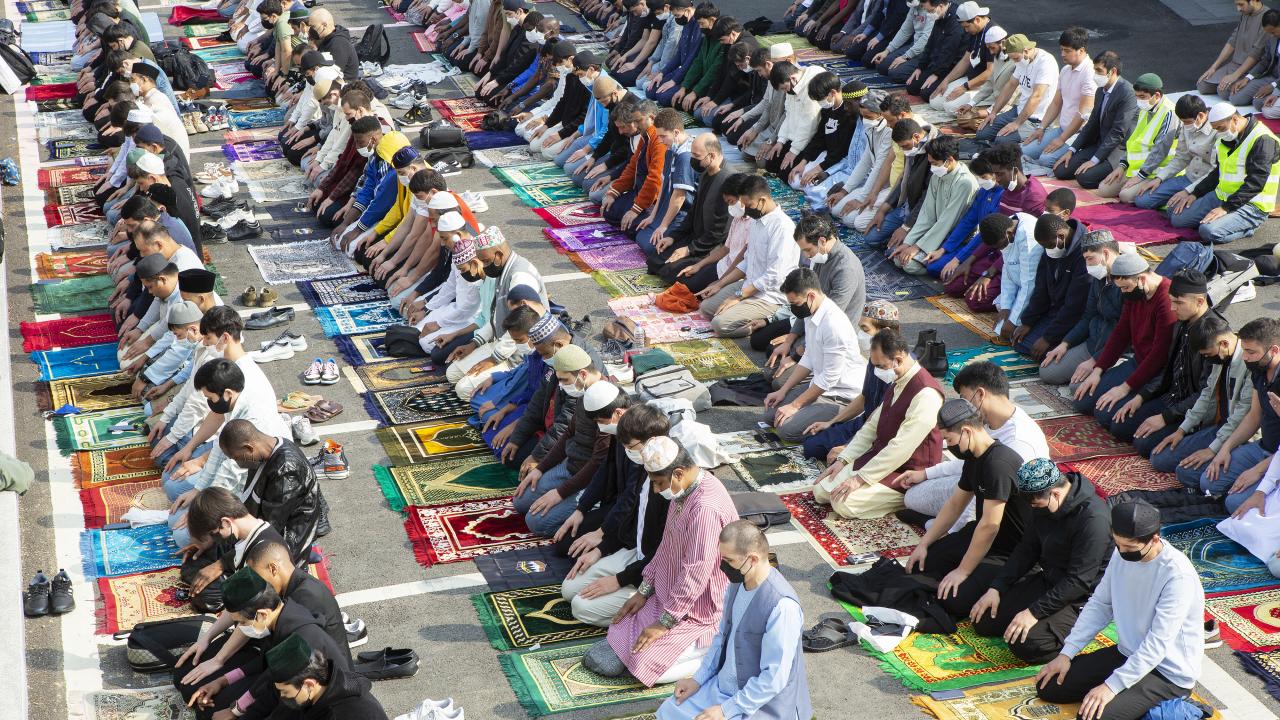 Güney Kore'nin başkenti Seul'de yaşayan Müslümanlar, Seul Merkez Camii'ne gelerek Ramazan Bayramı namazını eda etti.