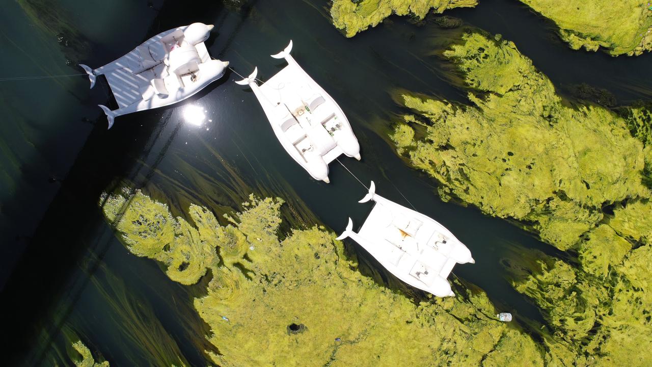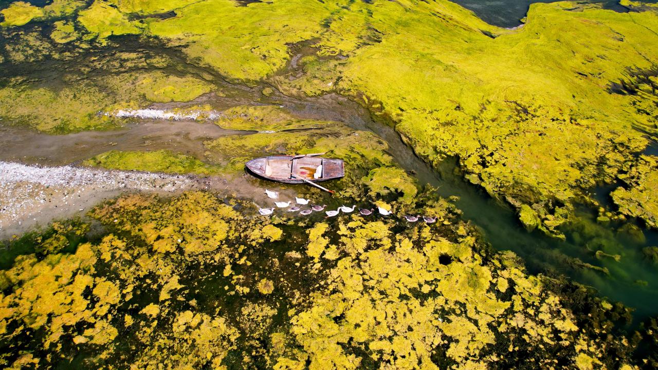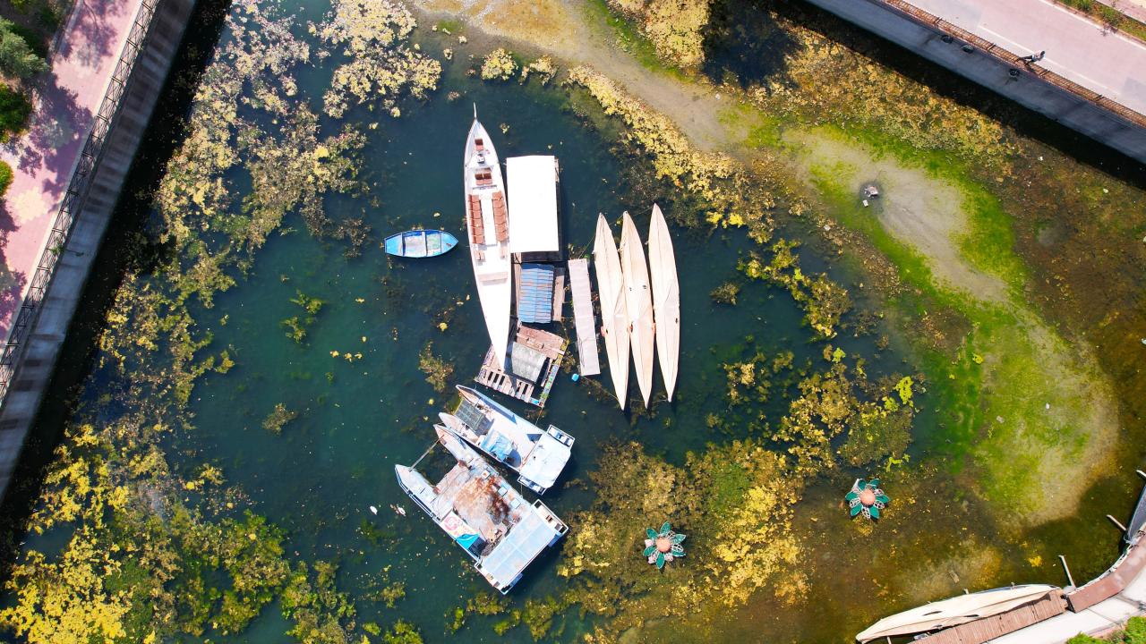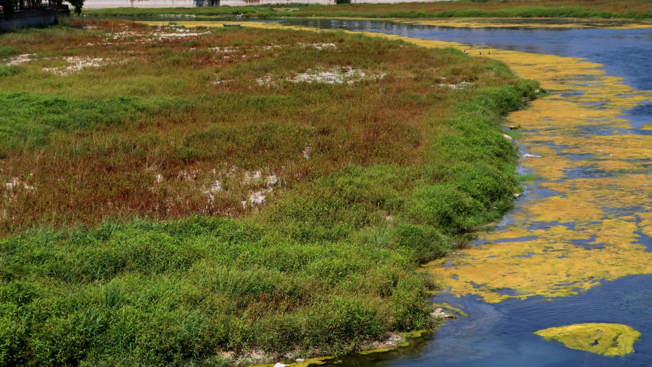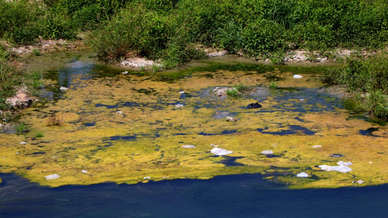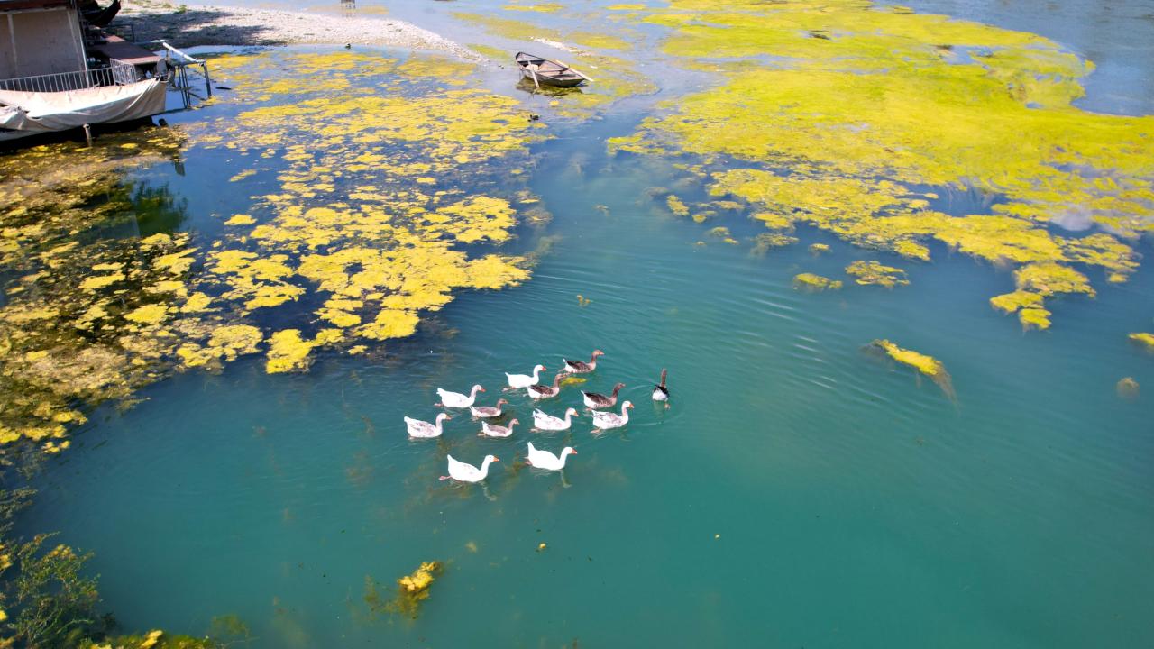 Akıntının durmasıyla birlikte nehirde yosun birikintileri oluştu.