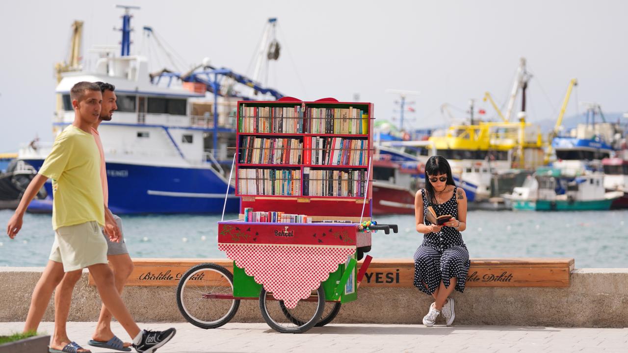 Tatil için Dikili`ye gelen Oktay Can da seyyar sahafı çok sevdiklerini, insanların kitaba ulaşımını kolaylaştırmasının yanında okuma isteği uyandırdığını dile getirdi.