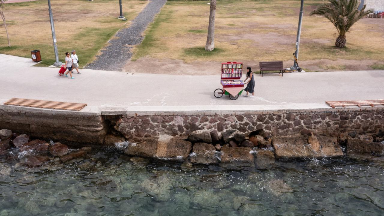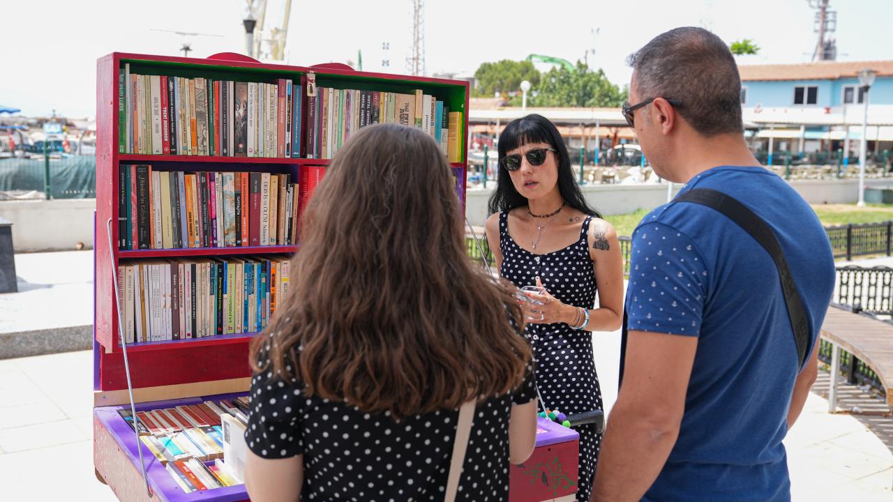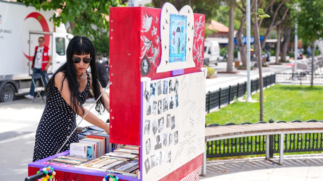 Türk ve dünya edebiyatının seçme eserlerinden eski ve yeni kitapların sıralandığı seyyar sahaf, kimi zaman sahilde kimi zaman parklarda kimi zaman da sokak aralarında insanların karşısına çıkıyor.