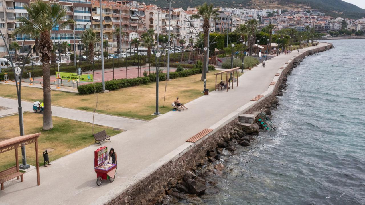 İzmir`in turistik ilçelerinden Dikili`de yaz mevsimiyle nüfus arttı, sahil, çarşı ve caddeler de hareketlendi. İlçeye gelenler seyyar tezgahlara alışkın olsa da 43 yaşındaki İçten Gürcan`ın tezgahının önünde durmadan geçemiyor.