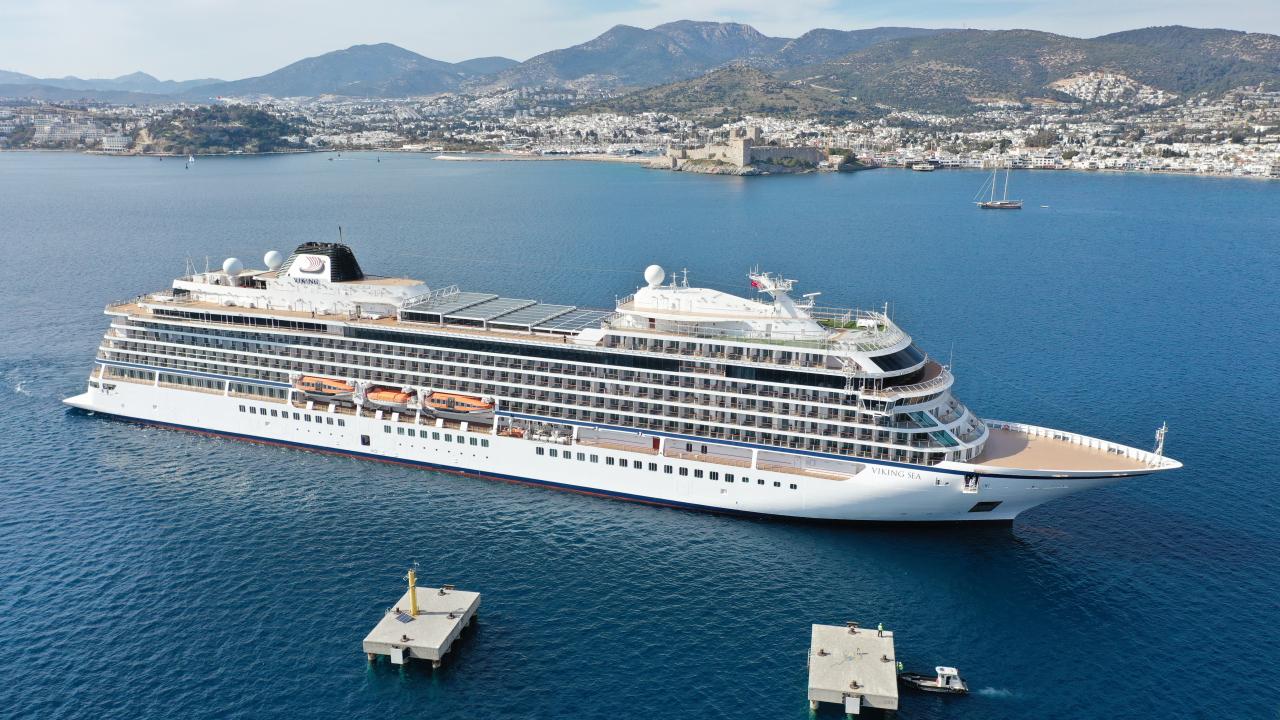 Salgın nedeniyle seferlerine ara verdiği öğrenilen gemi, yeniden operasyona hazırlanmak üzere dünyanın çeşitli yerlerinden gelen 120 kişilik yabancı mürettebatını Bodrum Cruise Port`tan aldı.