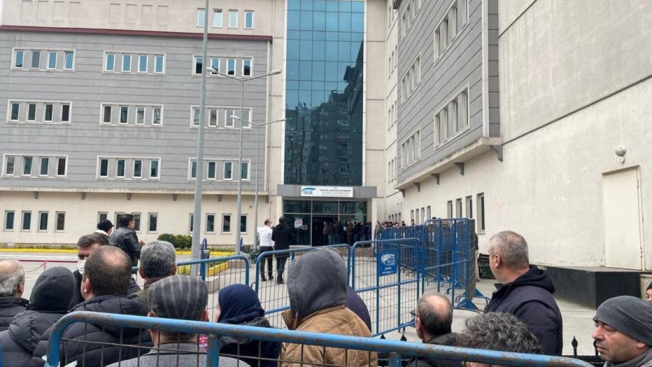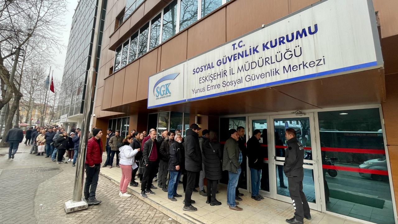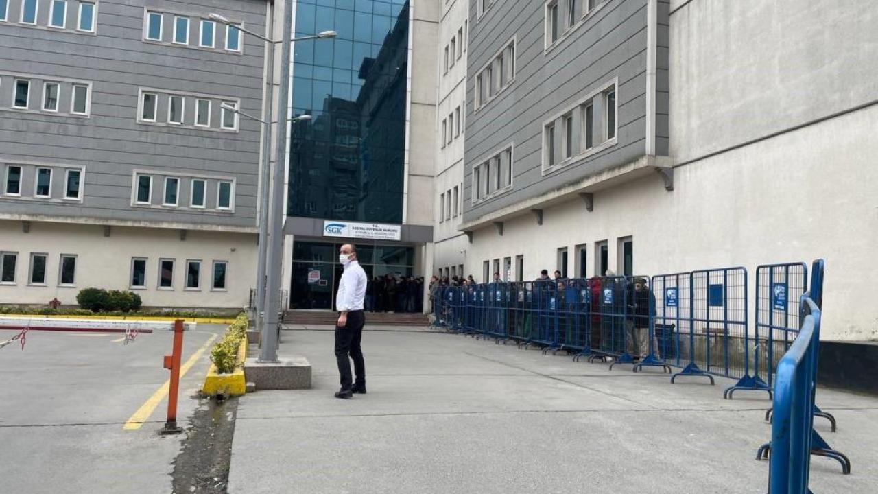 Şişli ve Fatih`te SGK binasının önünde kuyrukta bekleyenler işlemlerini yaptırmak için uzun süre bekledi.