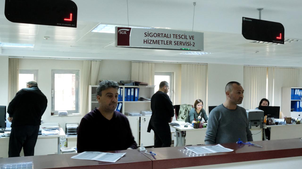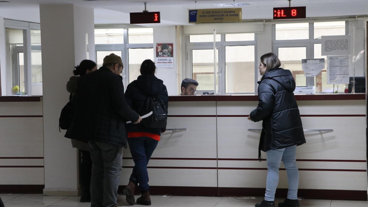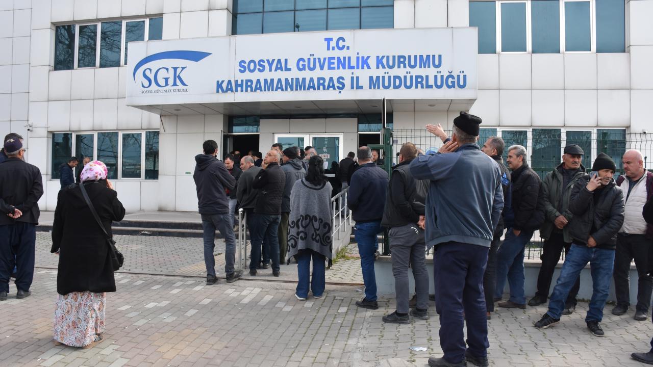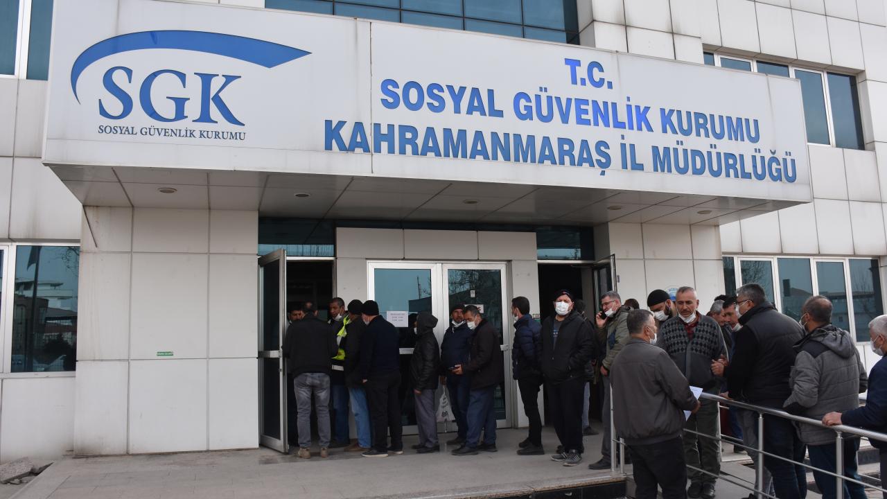 Şişli ve Fatih`te SGK binasının önünde kuyrukta bekleyenler işlemlerini yaptırmak için uzun süre bekledi.