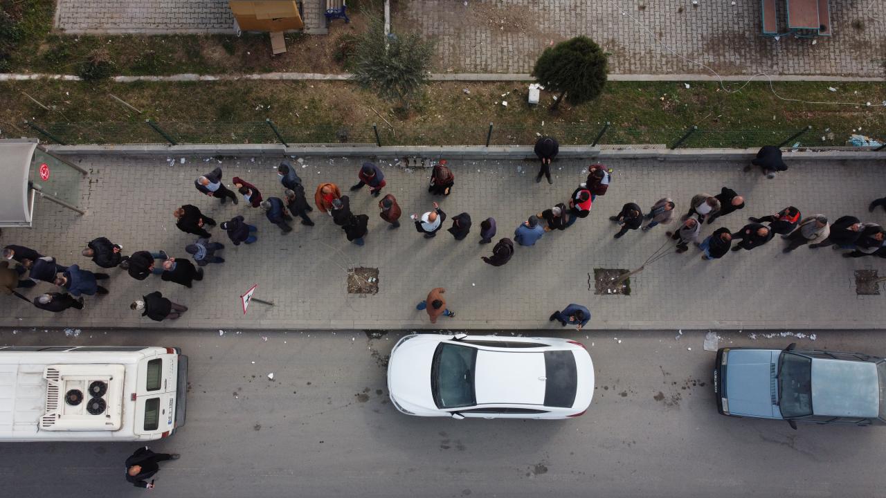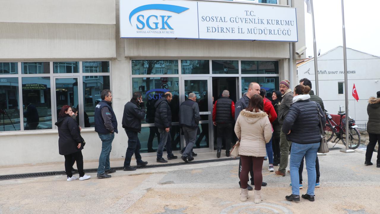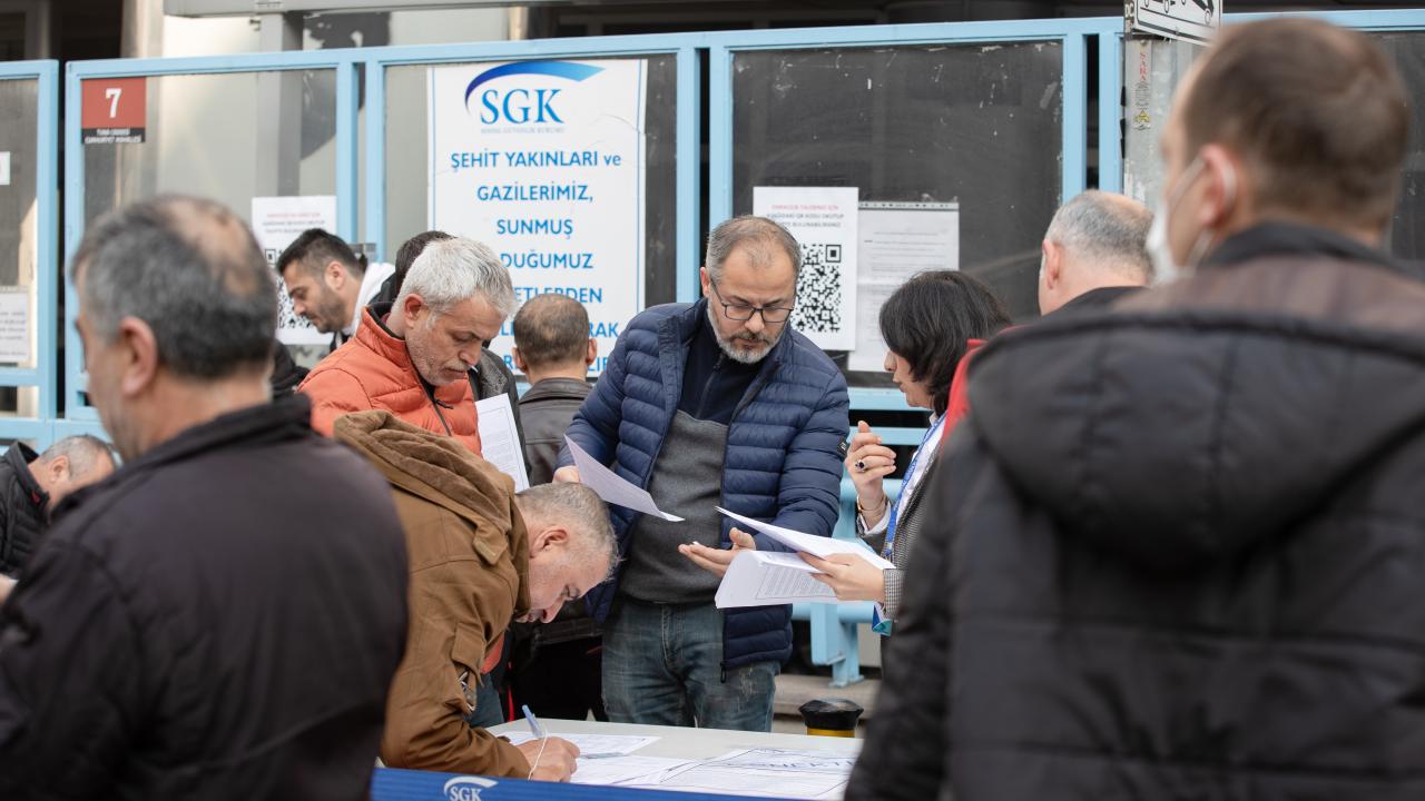 İstanbul`da SGK binaları önünde uzun EYT kuyruğu... Depremzede olan Hacı Yusuf: Hasarımız büyük ama bu bizi çok mutlu etti. Haberi gece 02.00`de öğrendim çok mutluyum. Allah, Cumhurbaşkanımızdan razı olsun. 5 yıldır bekliyorum normalde 3 yıl 3 ay daha vardı çok mutluyum. Hasarımız büyük ama bu bizi çok mutlu etti.