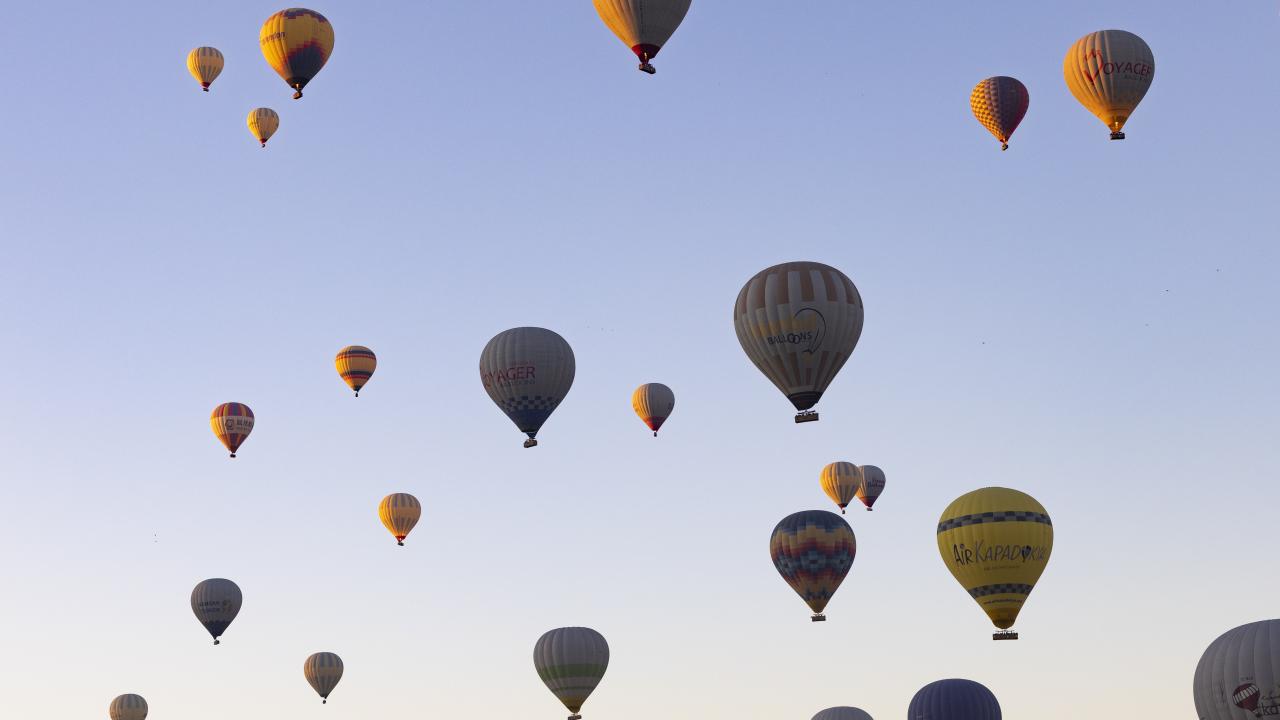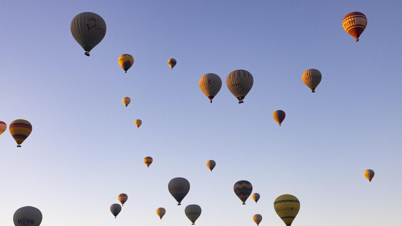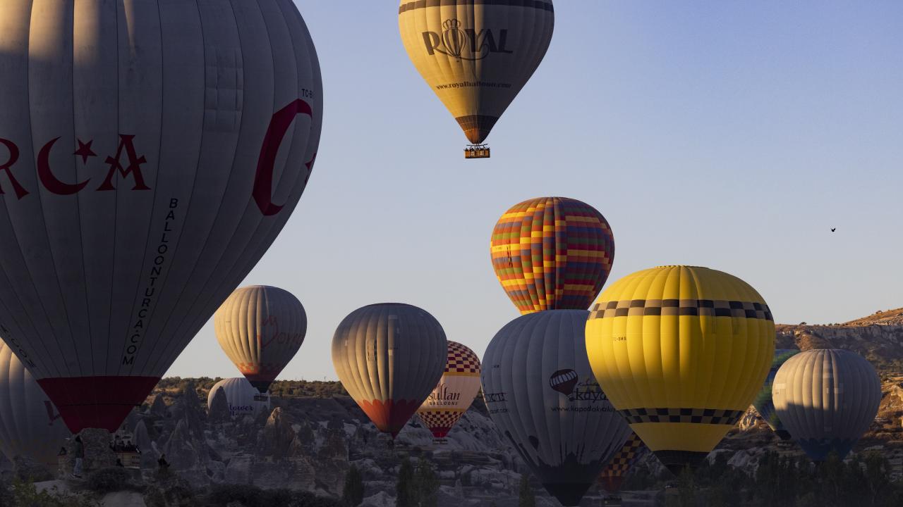 Türkiye'nin önemli turizm merkezlerinden Kapadokya'da, turistlere yönelik her sabah sıcak hava balon turu düzenleniyor.