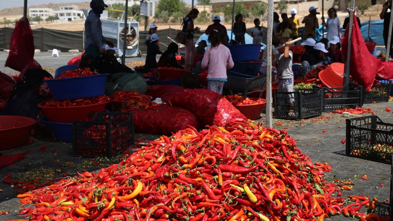 İsot işçileri, zaman zaman 40 dereceyi aşan sıcak havaya ve biberin acısına rağmen gün boyu mesai yapıyor.