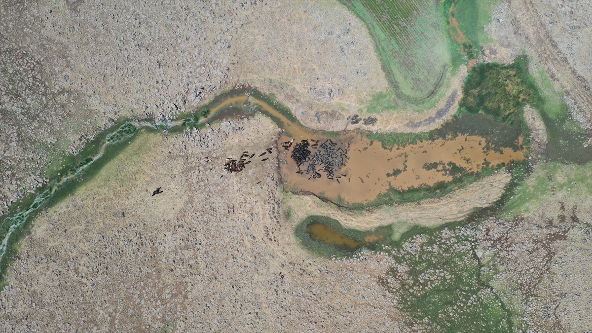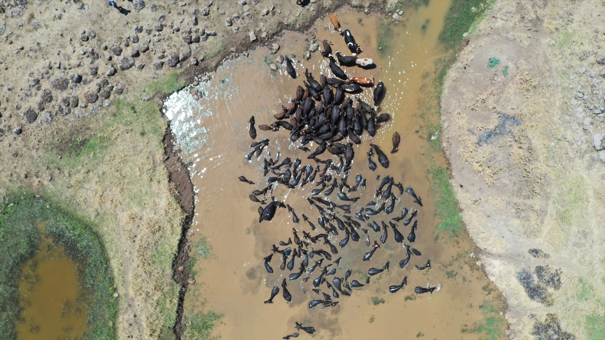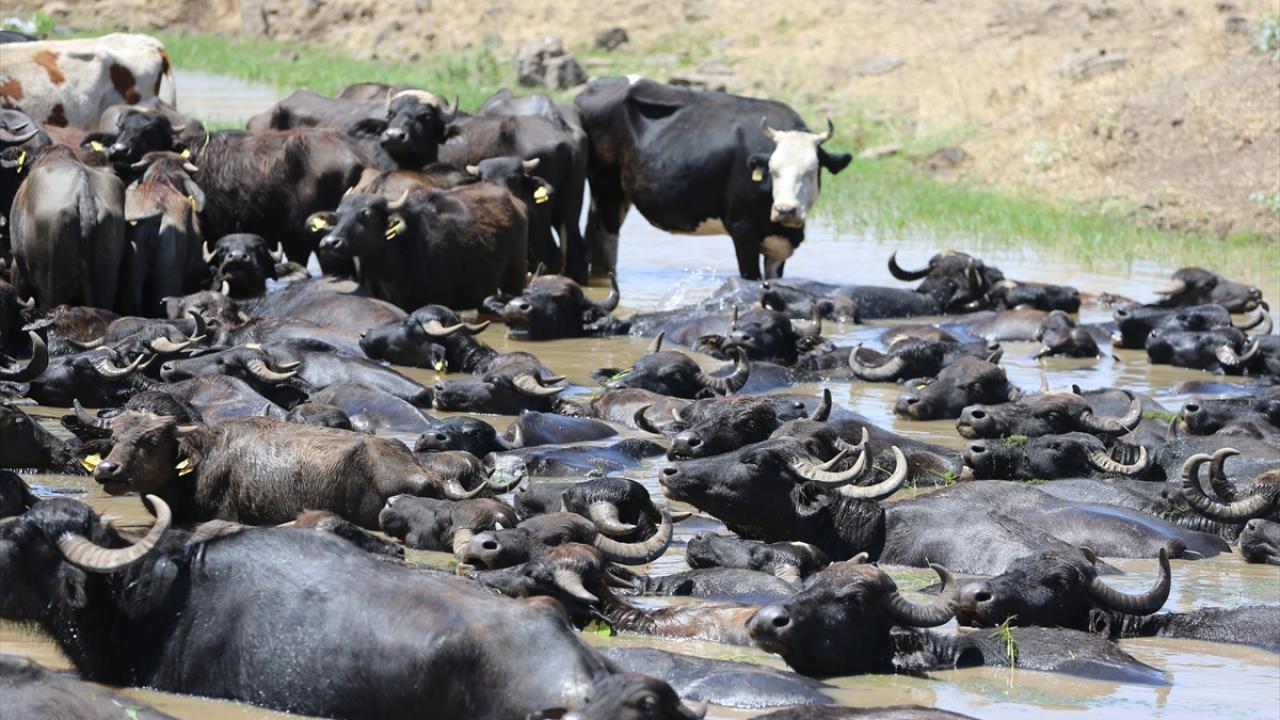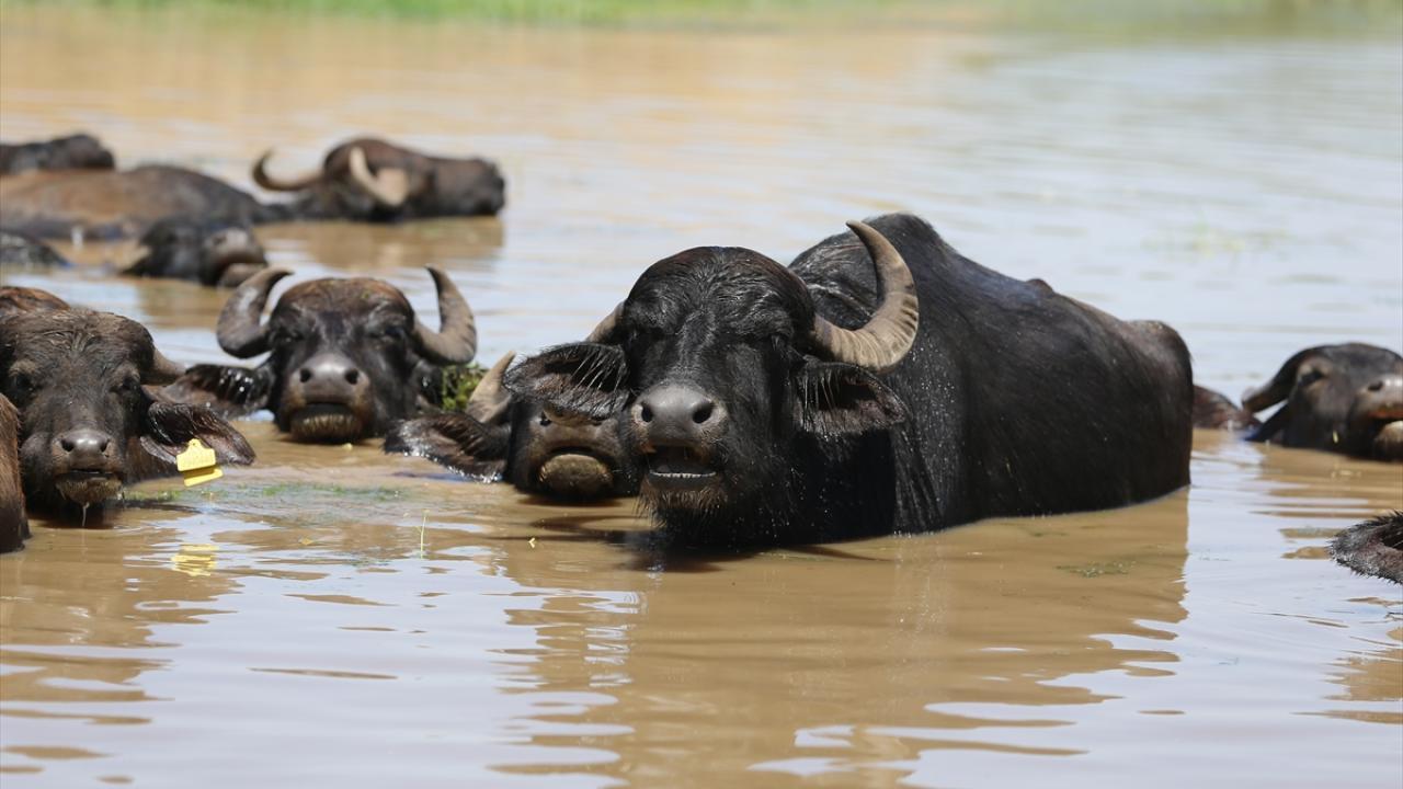 Sıcaklığın zaman zaman 40 dereceyi aştığı, hissedilen sıcaklığın ise 45 dereceye ulaştığı kentte, mandalar oluşturulan göletlerde serinledi.