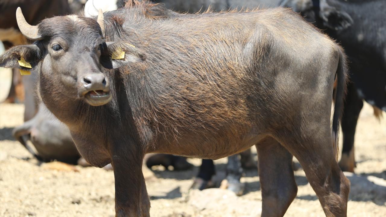 Günün belirli saatlerinde suya giren mandalar hava sıcaklığının düştüğü saatlerde sudan çıkarılarak otlatılıyor.