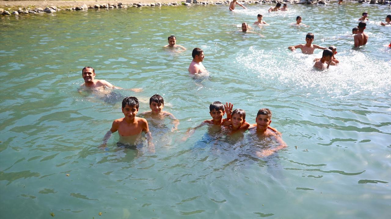 Vatandaşların yoğun ilgi gösterdiği gölet, kaplıcalardan sıcak termal su karışmasına rağmen tercih ediliyor.