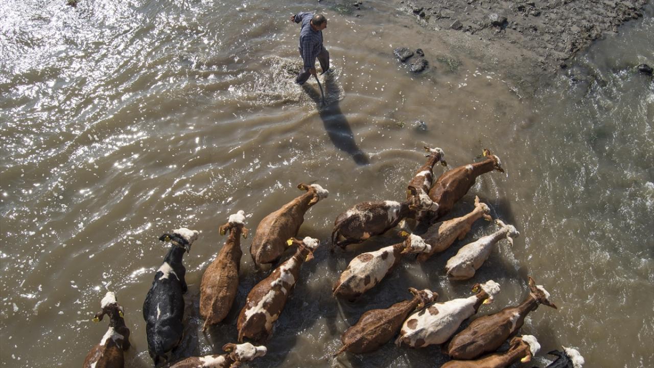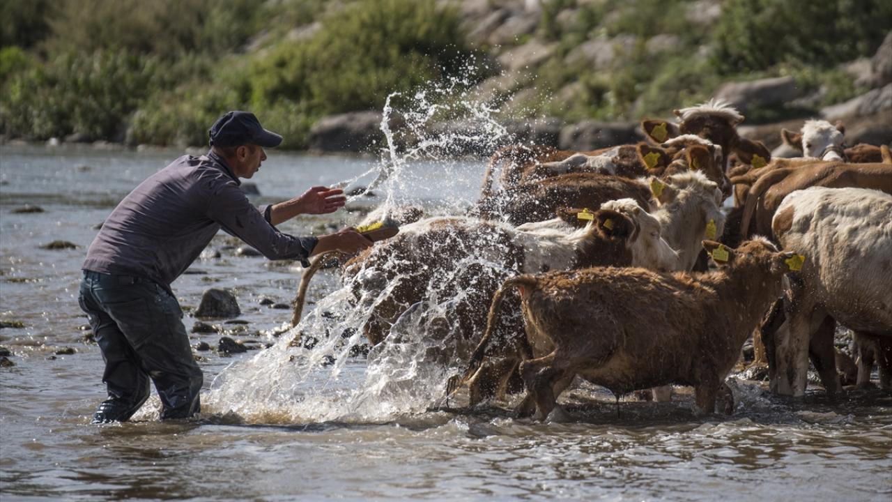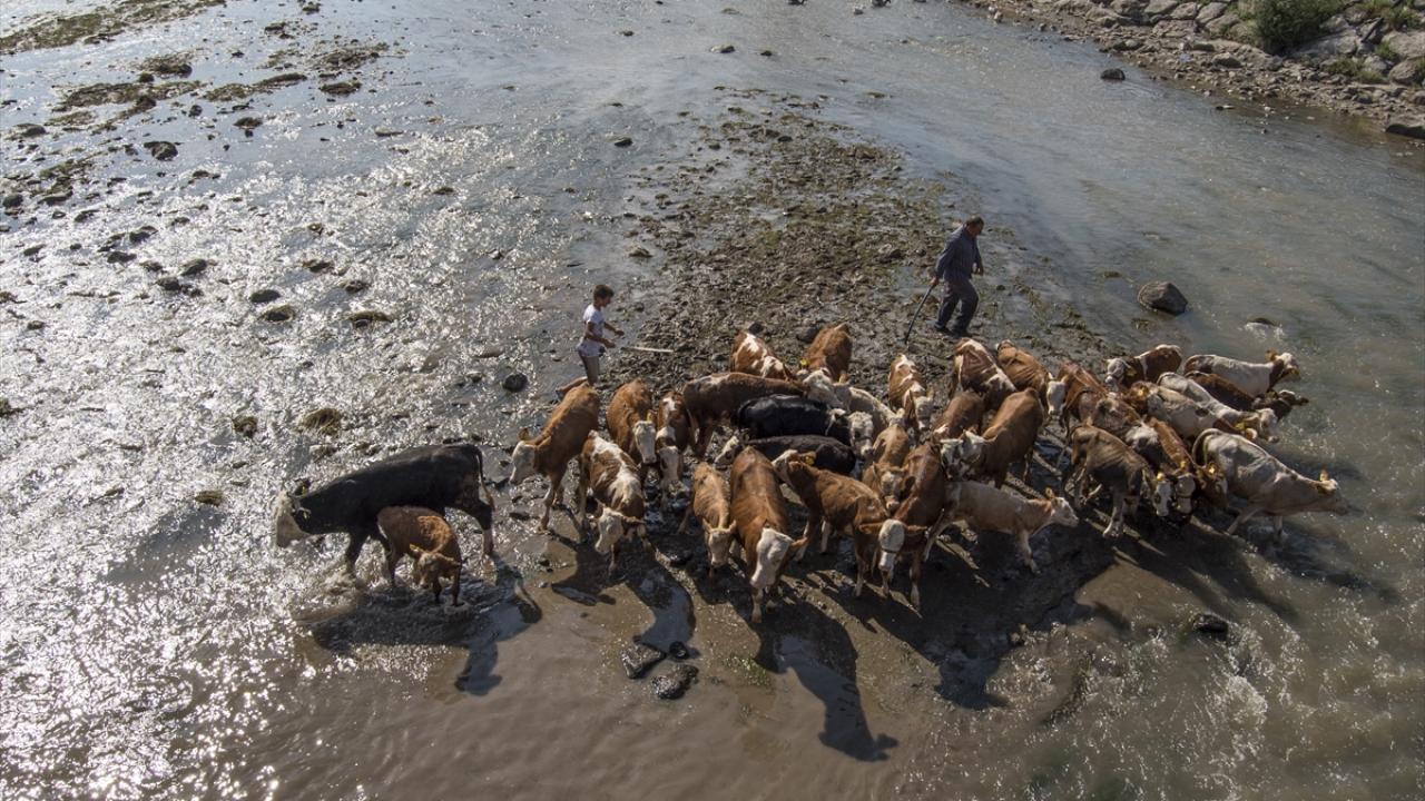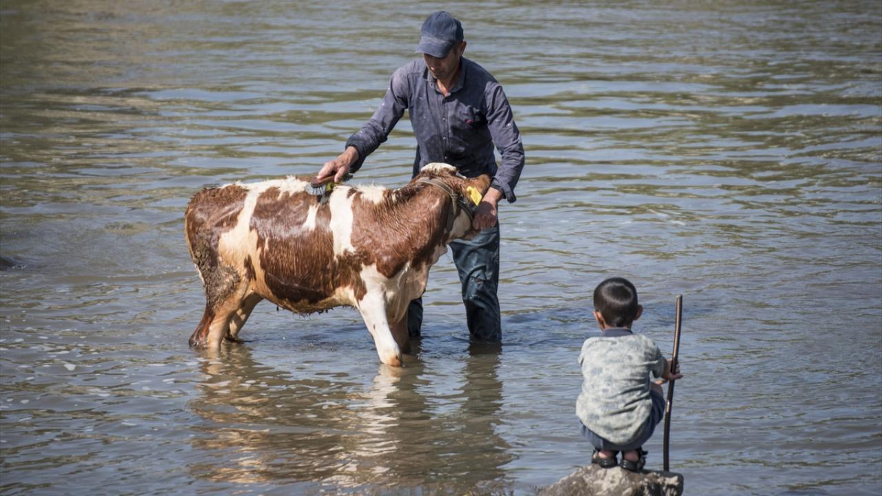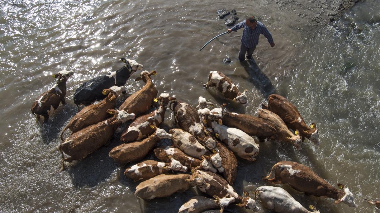 "Bu yıl havalar çok sıcak, günün büyük bölümü dışarıda kalan hayvanlar ise ister istemez bu sıcaktan etkileniyor. Biz de hayvanlarımız sıcaktan etkilenmesin diye öğlen olunca evlere getiriyoruz, hemen köyün yanından geçen Kars Çayı`na sürüyoruz. Burada da onları tek tek yıkayarak serinletiyoruz. Bizim için keyifli de oluyor, işimiz de bitti mi hayvanları tekrardan otlamaya gönderiyoruz."