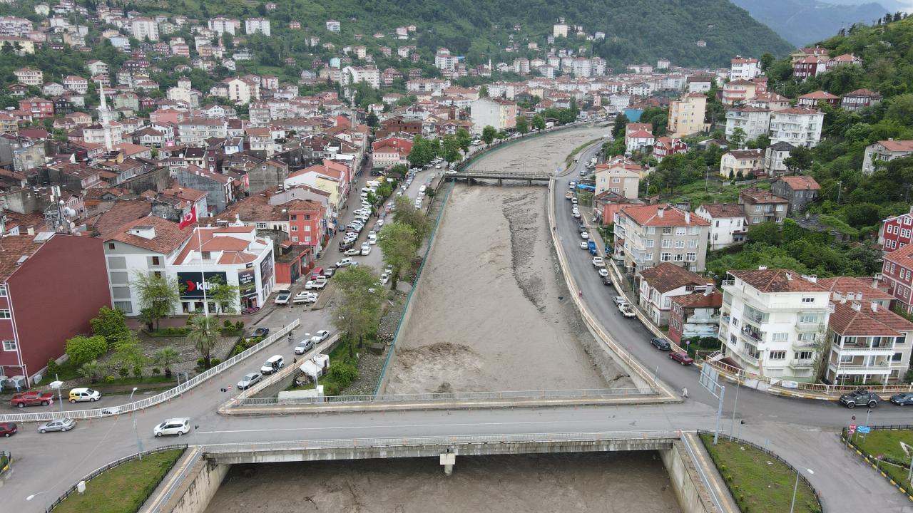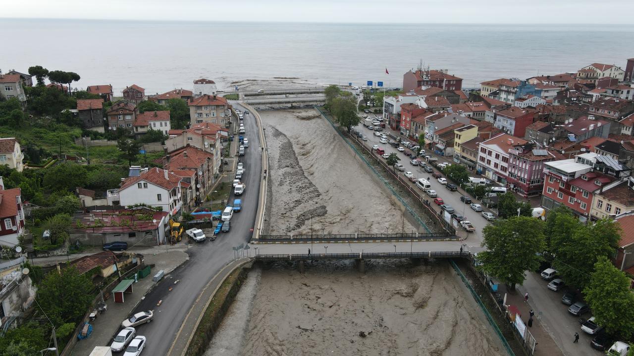 Şiddetli sağanağın etkili olduğu Kastamonu'nun İnebolu ilçesi dron ile görüntülendi. Şiddetli sağanak nedeniyle taşma tehlikesi yaşanan İnebolu Çayı'nda suyun debisi düştü.