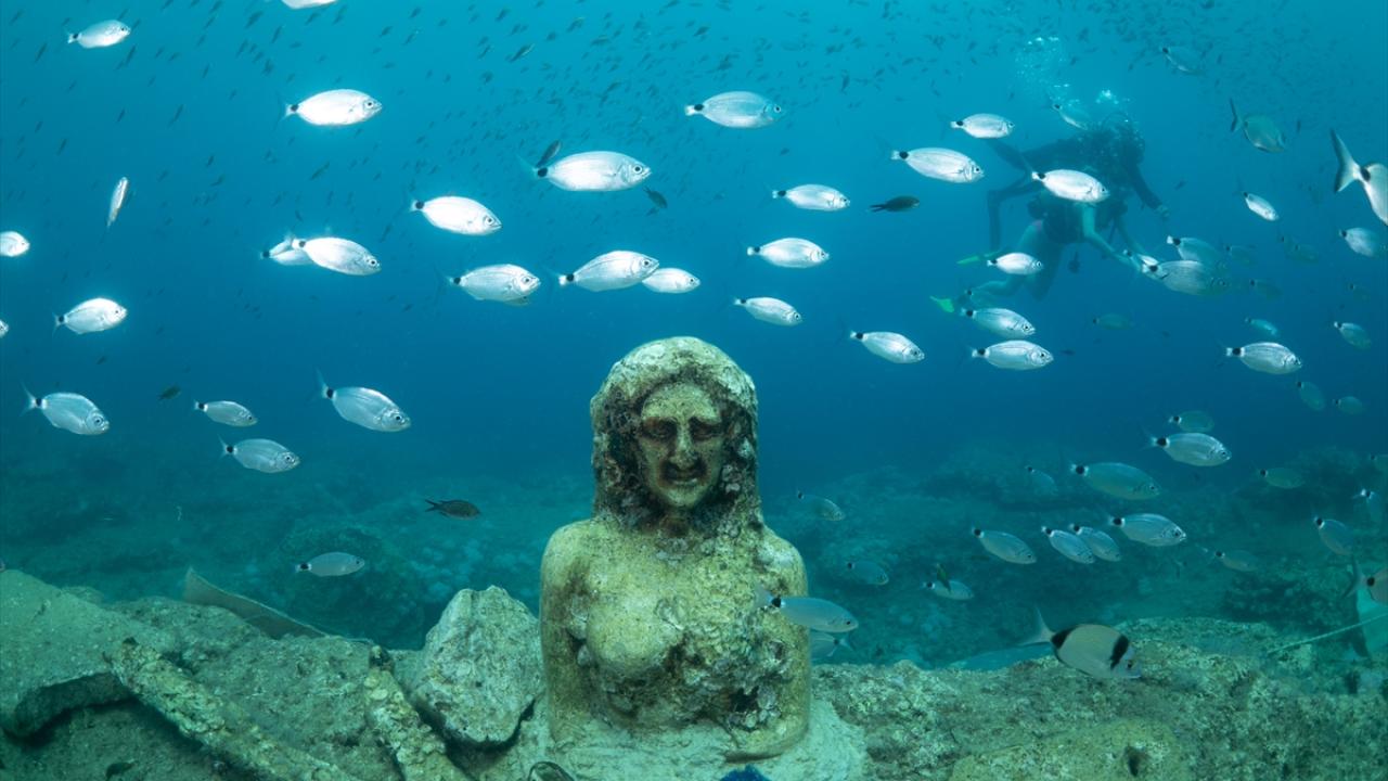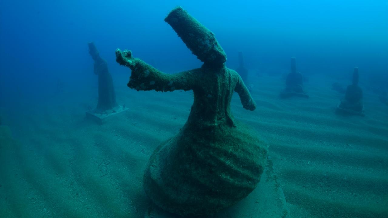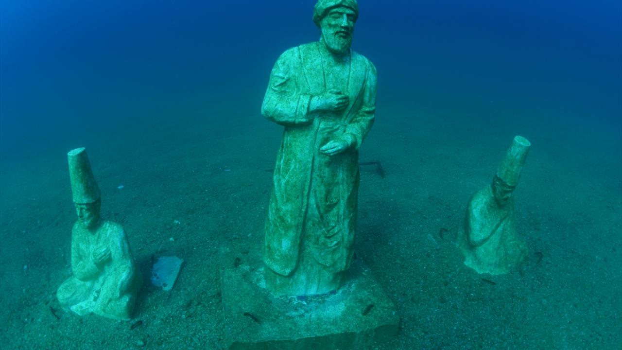 Dalış yapan turistler, Side`nin yaklaşık 1,5 mil açığında, 11, 18 ve 24 metre derinliklerde bulunan ve Anadolu medeniyetinin zenginliklerini anlatan 117 heykelin sergilendiği müzeyi geziyor.