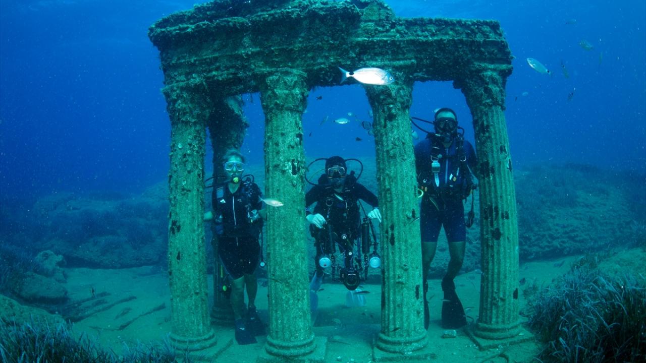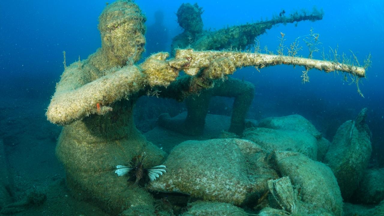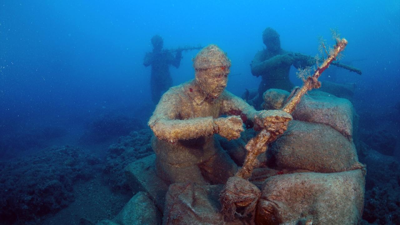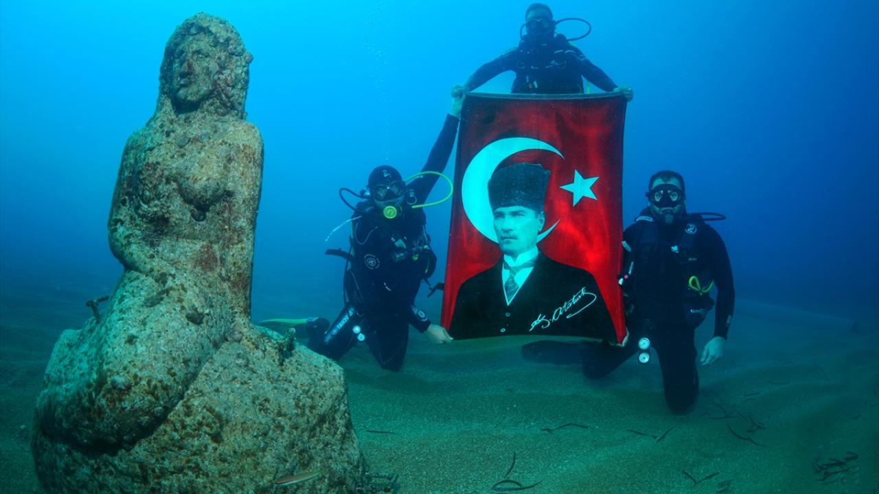 Dalış yapan turistler, Side`nin yaklaşık 1,5 mil açığında, 11, 18 ve 24 metre derinliklerde bulunan ve Anadolu medeniyetinin zenginliklerini anlatan 117 heykelin sergilendiği müzeyi geziyor.