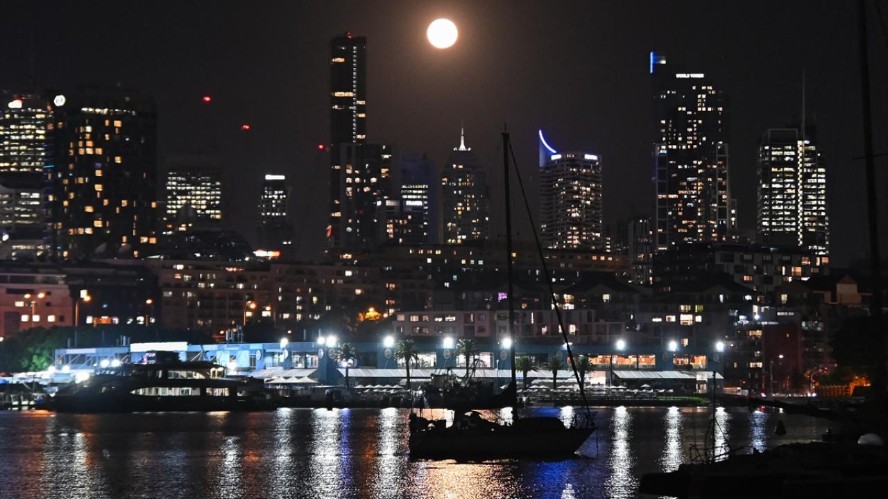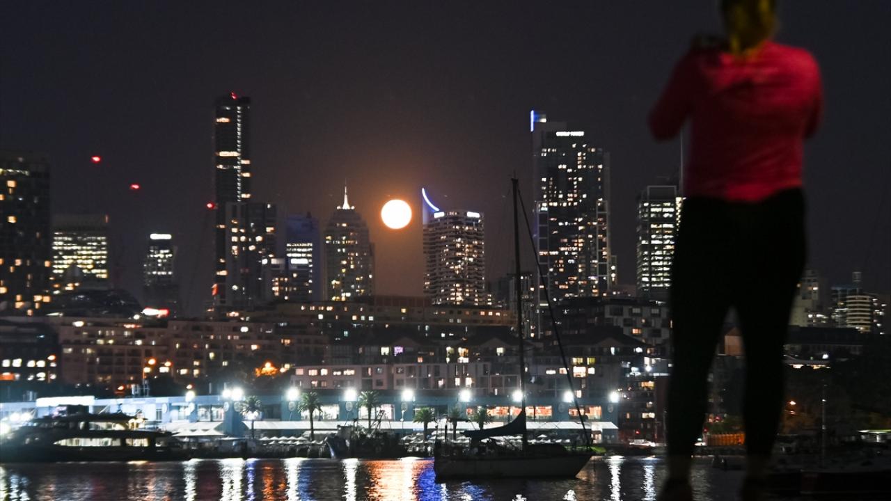 Avustralya'nın Sidney kentinin ticaret merkezi olan, Sydney Merkezi İş Bölgesi'nde (CBD) beliren Süper Pembe Ay, güzel görüntü oluşturdu.