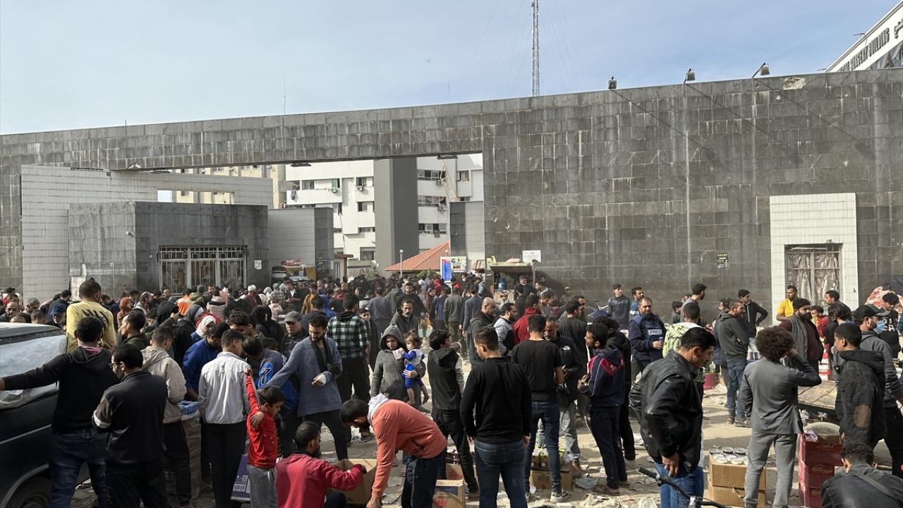 Şifa Hastanesi'ne sığınan Filistinliler, zor şartlar altında yaşamlarını sürdürüyor