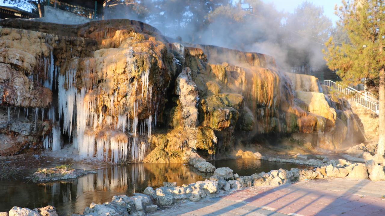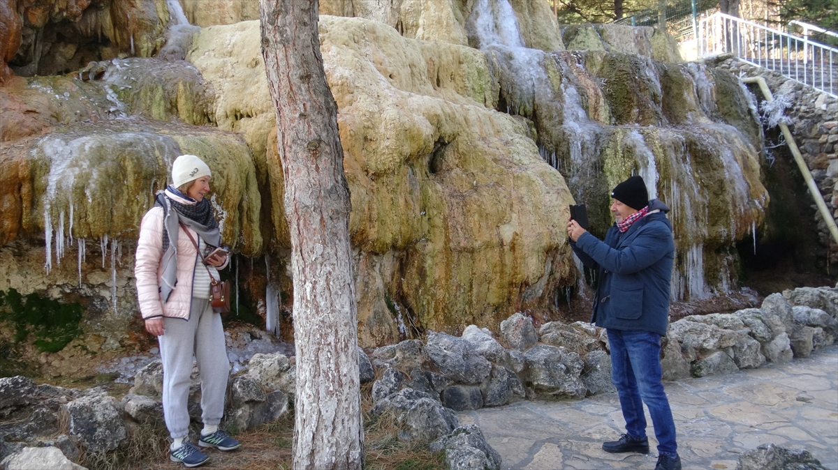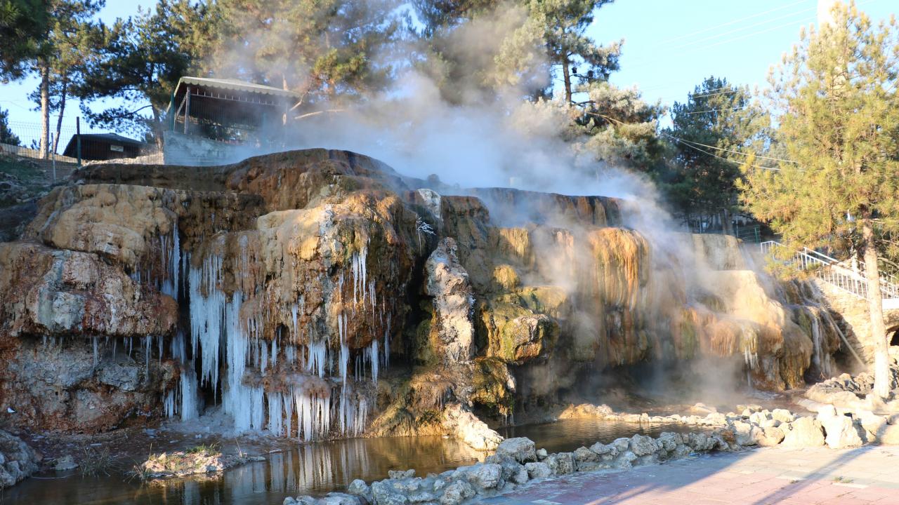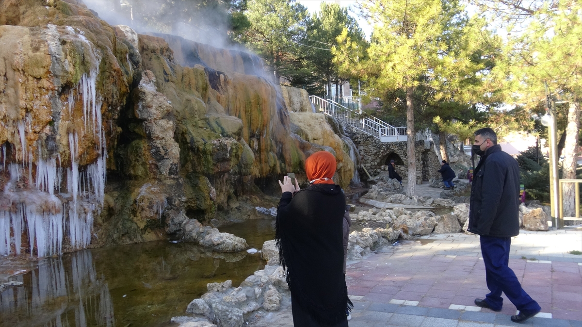 70 derece sıcaklıkta çıkan suyun odalara verilirken 60 dereceye kadar düştüğünü dile getiren Nacak, "Burada oluşturduğumuz yapay şelaleden akan sıcak suların buzlanma yapması güzel bir görüntü oluşturuyor. Yüksek minareli olan sıcak su hava sıcaklığının sıfırın altında 14 dereceye düşmesiyle bu görsel şöleni oluşturuyor. Misafirlerimiz de burada bu görüntüyü ölümsüzleştirmeye çalışıyor. Kaplıcalarımız hem şifa dağıtıyor hem de doğa ile iç içe olmasından dolayı huzur veriyor." diye konuştu.