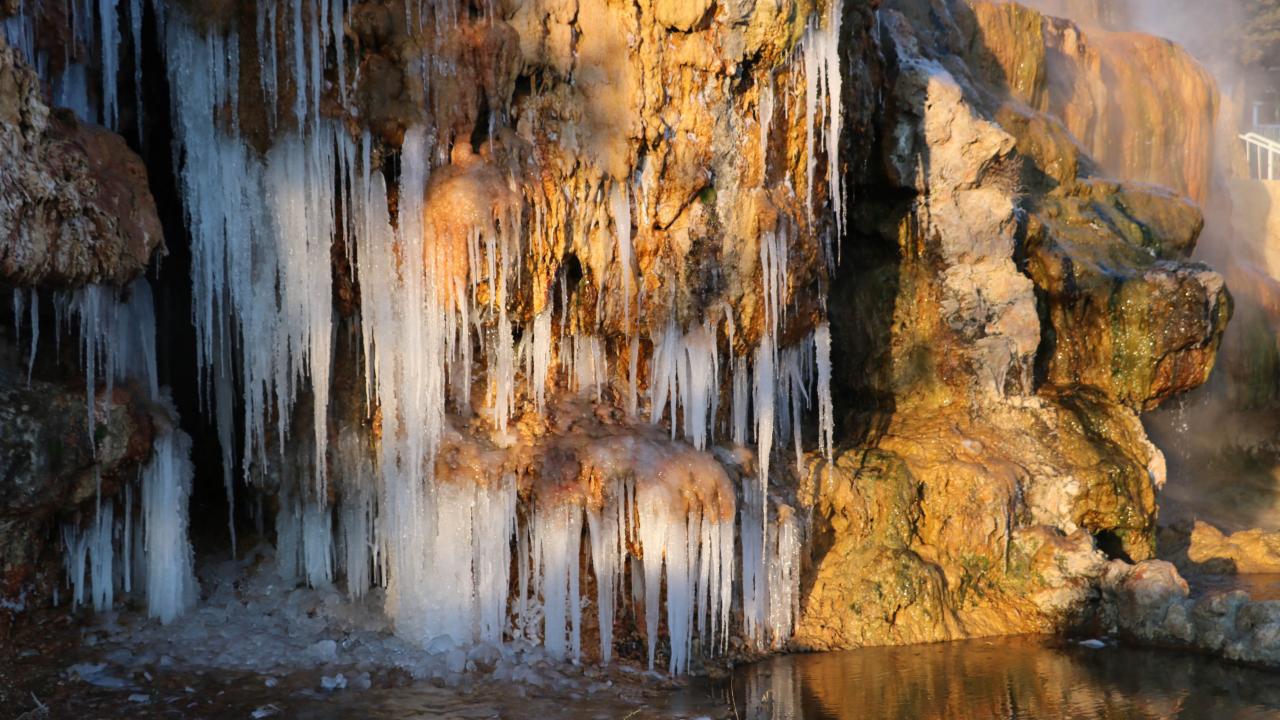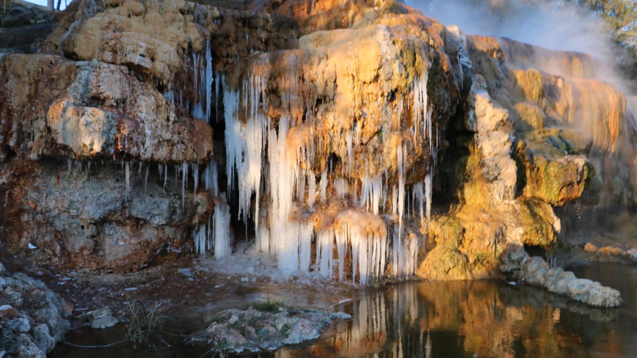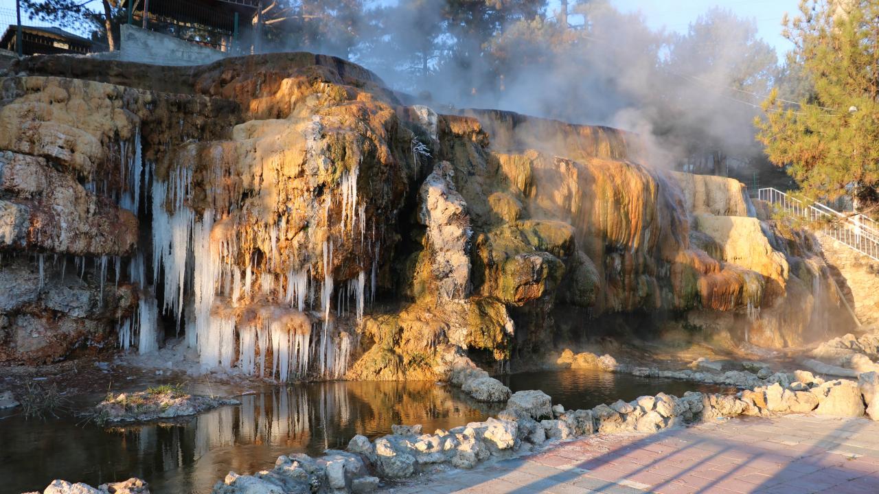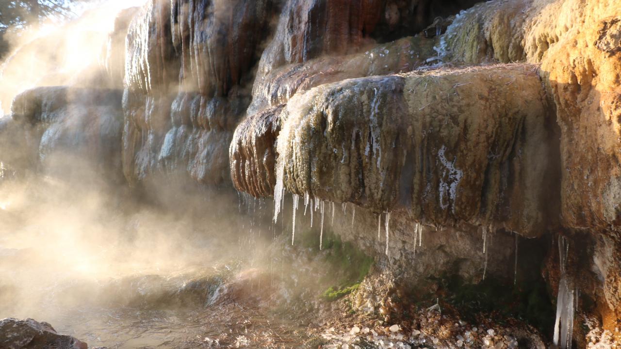 70 derece sıcaklıkta çıkan suyun odalara verilirken 60 dereceye kadar düştüğünü dile getiren Nacak, "Burada oluşturduğumuz yapay şelaleden akan sıcak suların buzlanma yapması güzel bir görüntü oluşturuyor. Yüksek minareli olan sıcak su hava sıcaklığının sıfırın altında 14 dereceye düşmesiyle bu görsel şöleni oluşturuyor. Misafirlerimiz de burada bu görüntüyü ölümsüzleştirmeye çalışıyor. Kaplıcalarımız hem şifa dağıtıyor hem de doğa ile iç içe olmasından dolayı huzur veriyor." diye konuştu.