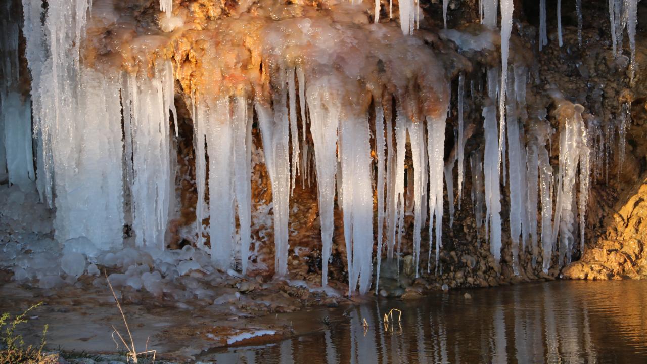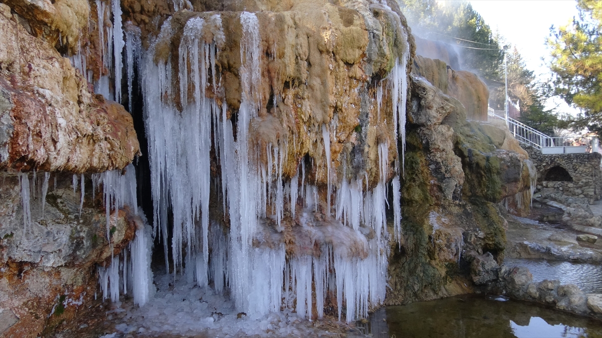 Şelalede oluşan buz sarkıtları bölgeye gelen ziyaretçiler tarafından görüntülendi.