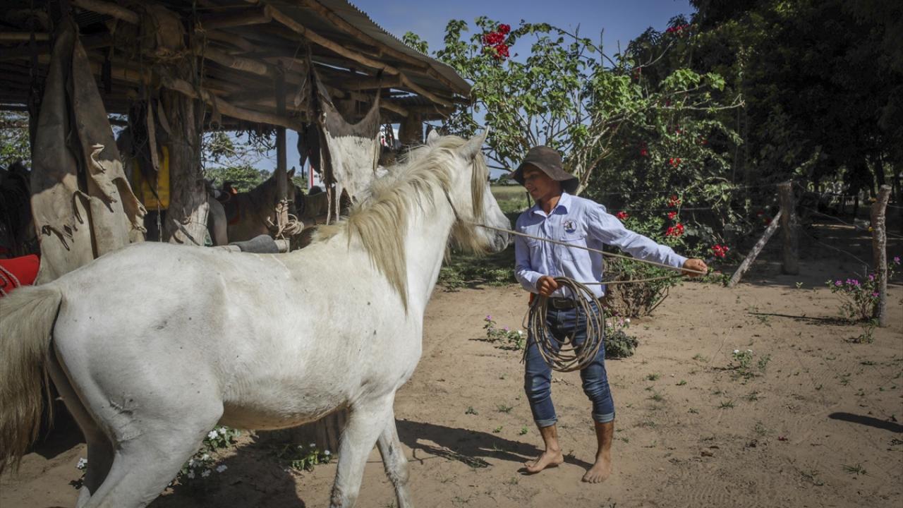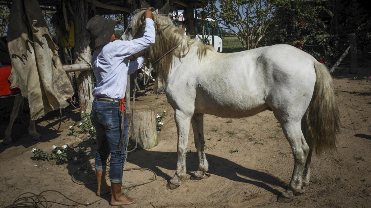 Kolombiya'nın Vichada departmanının Arauca şehrinin Venezuela sınır boyunda uzayan geniş otlaklarda sığır çiftçiliği yapan Kolombiyalı 'kovboylar', mesailerine başladı.