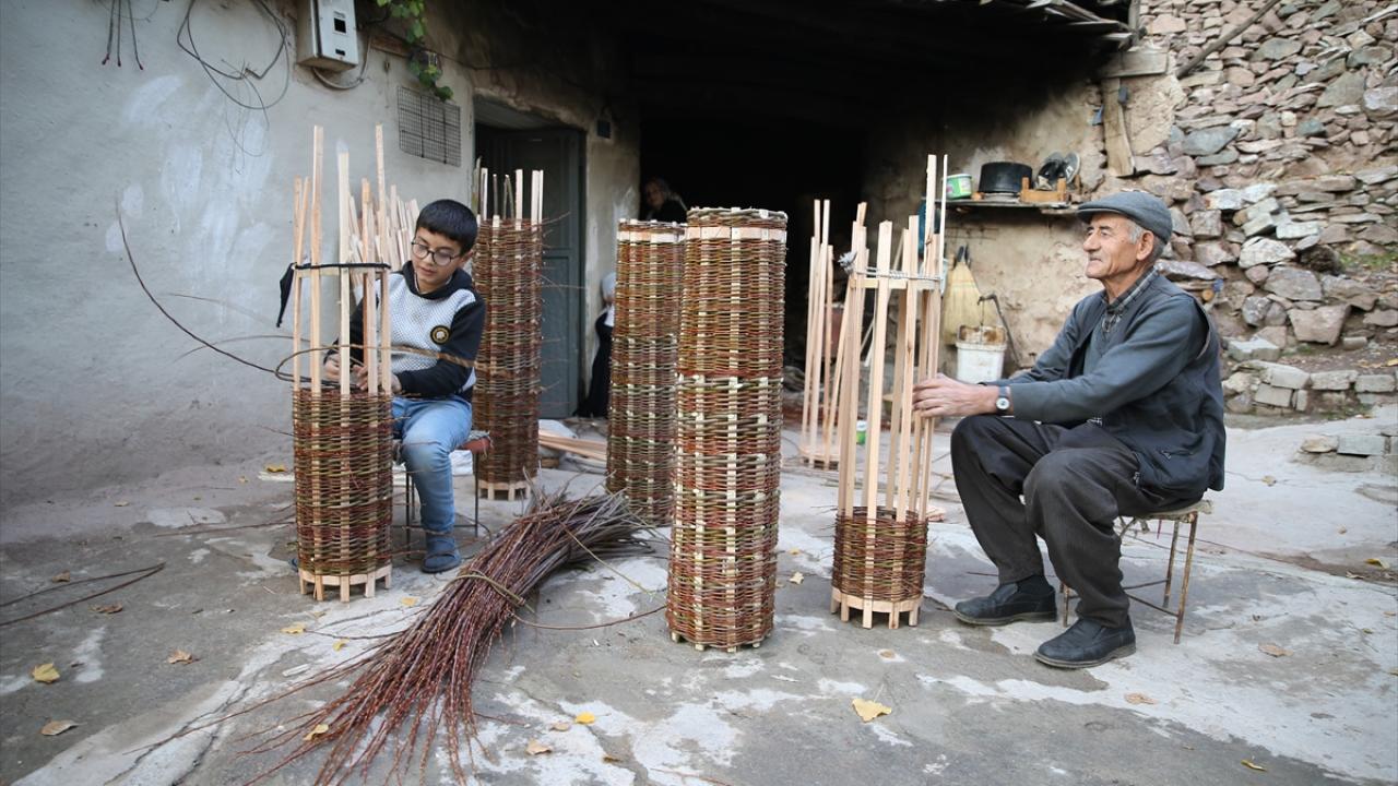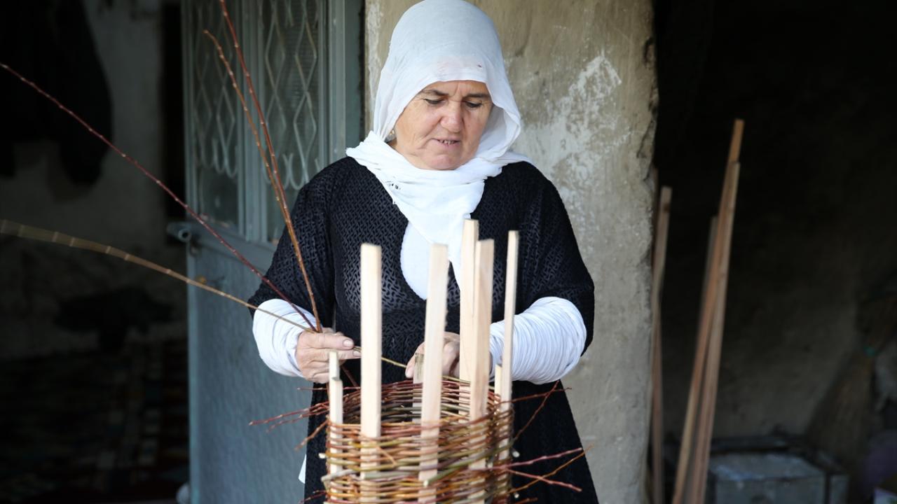 Beldede tarım ve hayvancılıkla uğraşan 5 çocuk babası Turşak, 10 yıl önce geleneksel yöntemlerle sepet yapımına başladı.