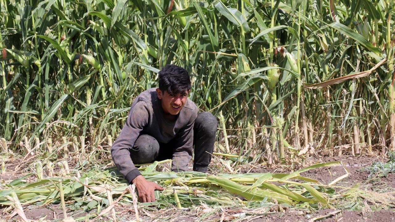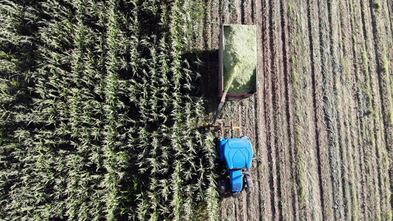 Aldıkları destekle yaz boyunca tarlalarda ekim yapan çiftçiler, büyük emeklerle yetiştirdikleri ve boyları yaklaşık 3 metreyi aşan yem bitkisini hasat etmeye başladı.