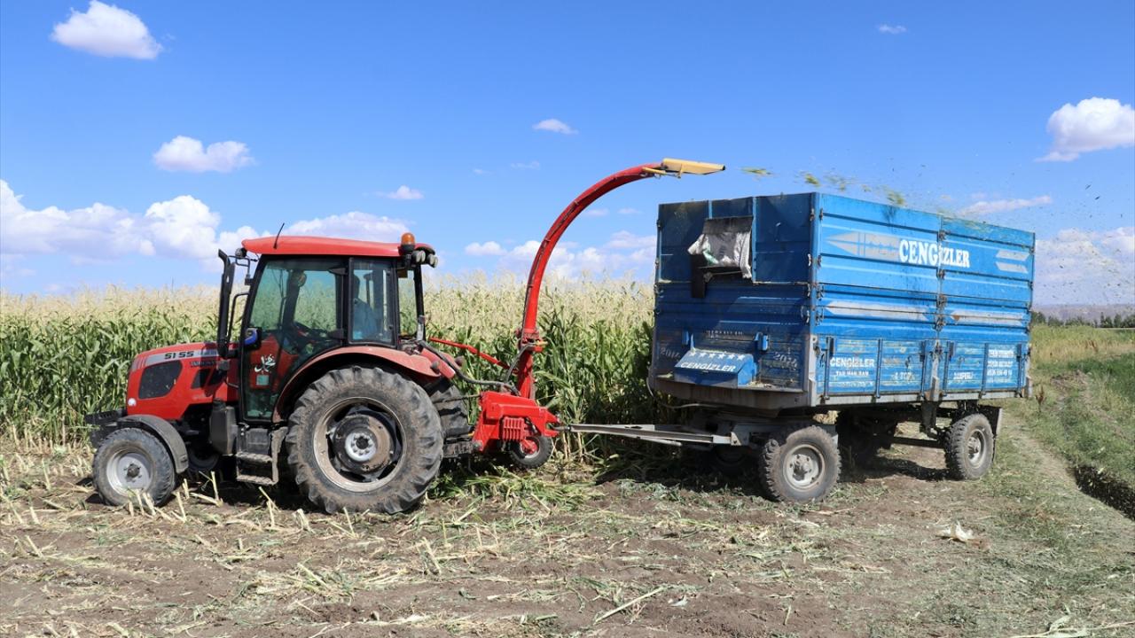 Devlet desteğiyle tarım alanlarını yaygınlaştıran Ağrı'daki çiftçiler, silajlık mısırda hasada başladı.