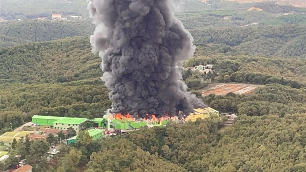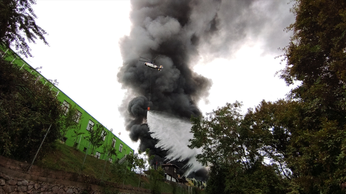 Zaman zaman patlamaların da yaşandığı yangına havadan da helikopterle müdahale edildi.