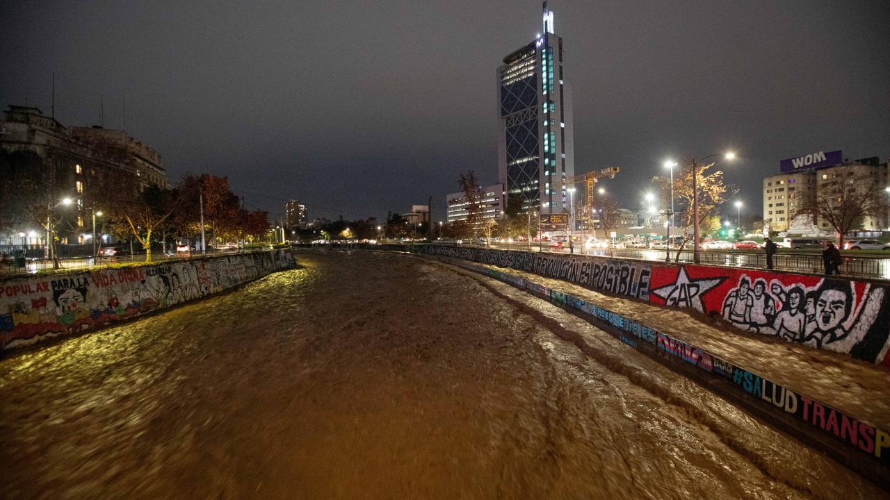 Şili’nin başkenti Santiago'da akşam saatlerinde etkili olan sağanak nedeniyle Mapocho Nehri taştı, cadde ve sokaklar su altında kaldı.