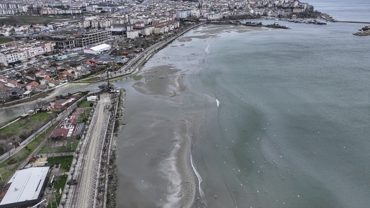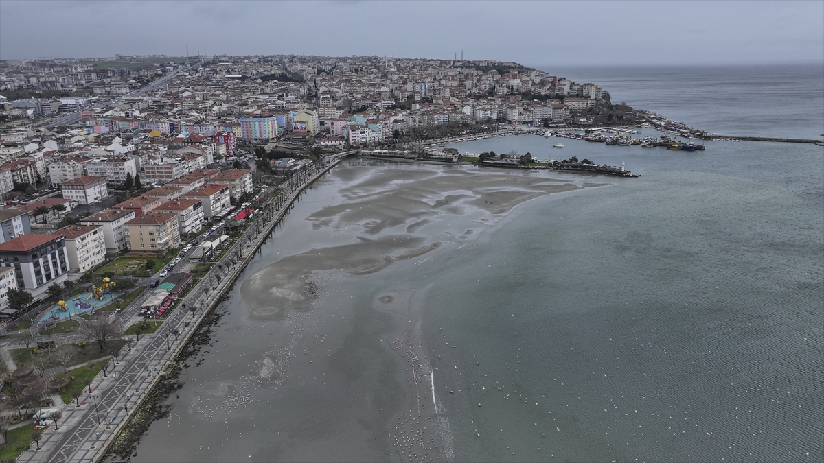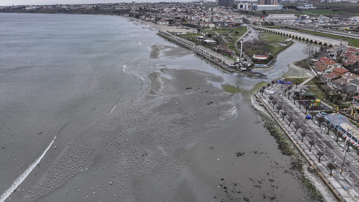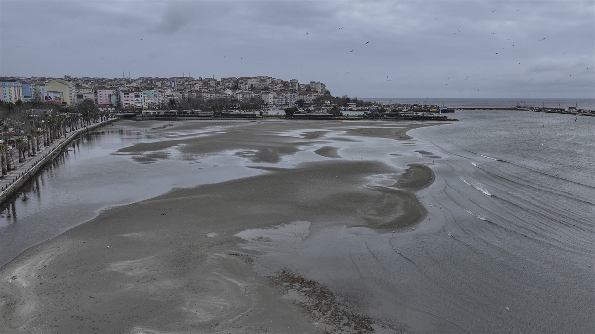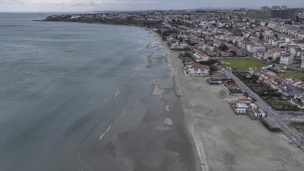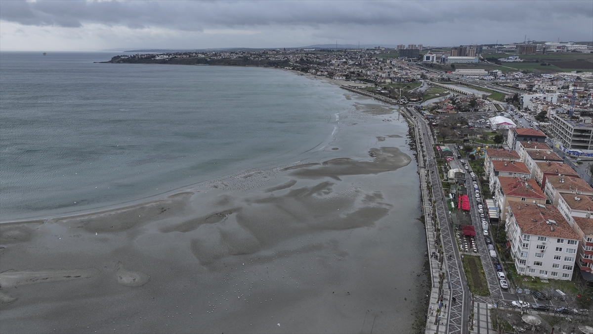 Silivri sahilinde deniz suyu kıyıdan yaklaşık 100 metre çekildi. Suyun çekilmesiyle sahilde kumlardan adacıklar oluştuğu gözlendi.