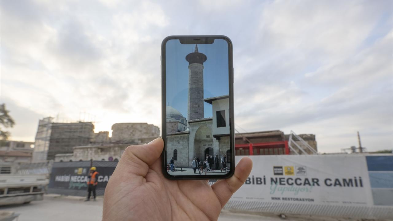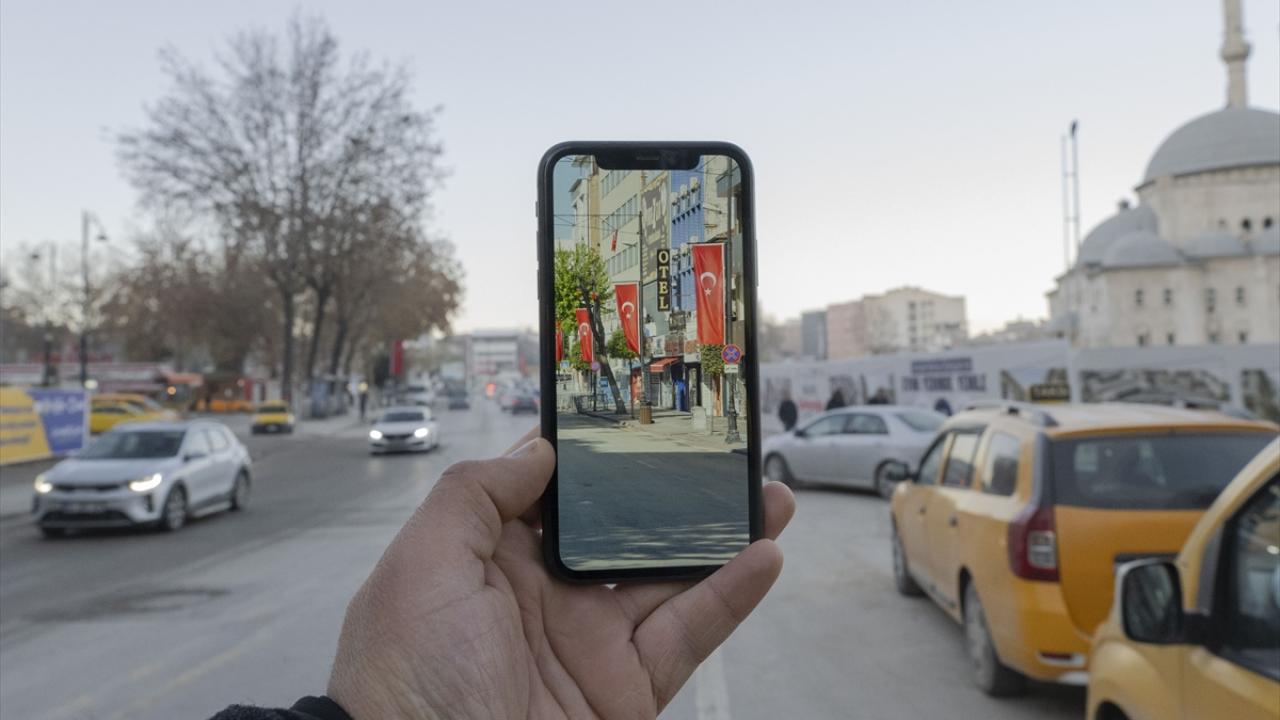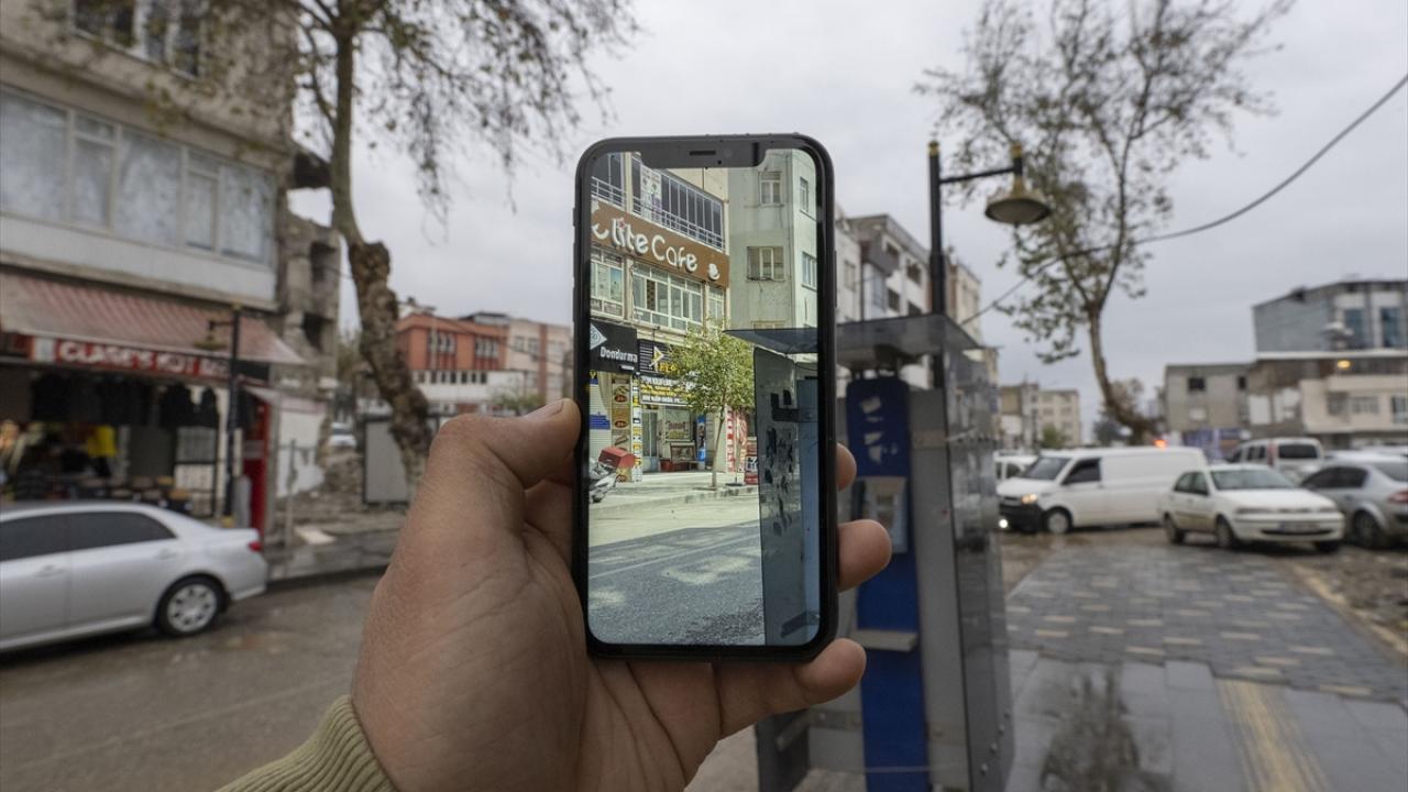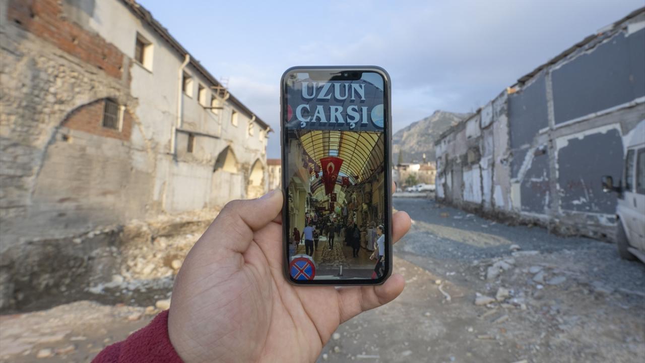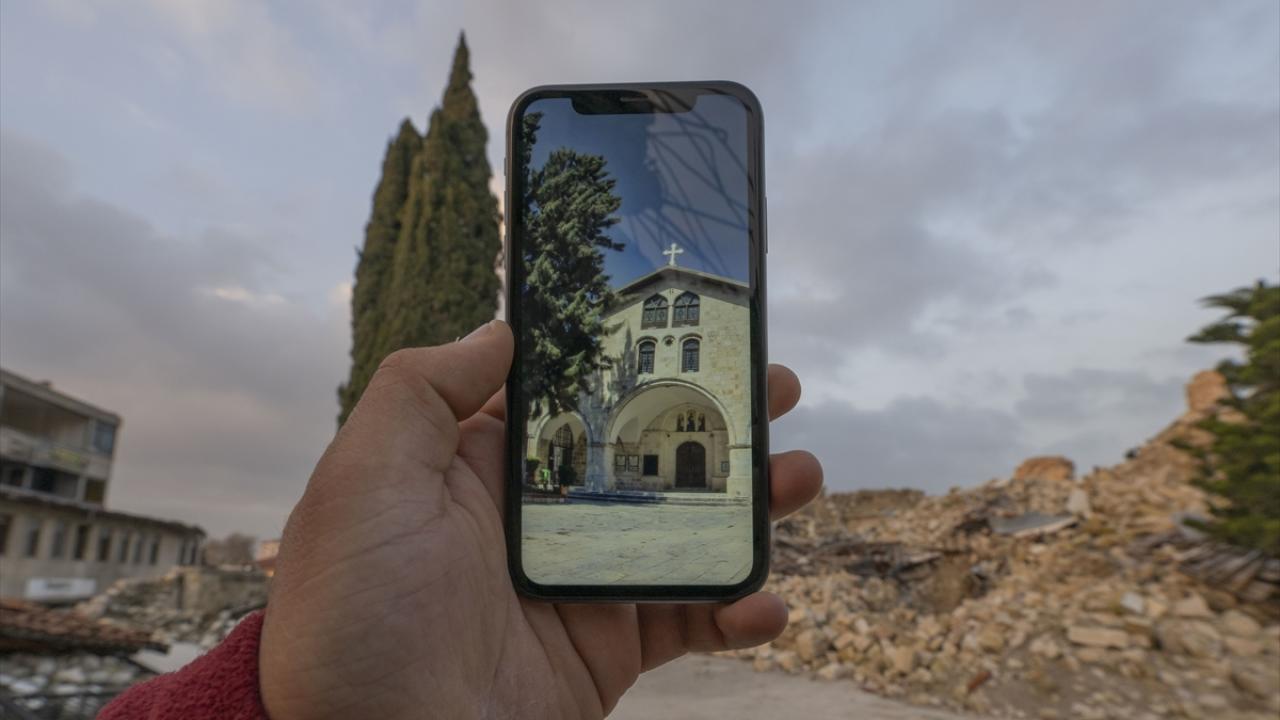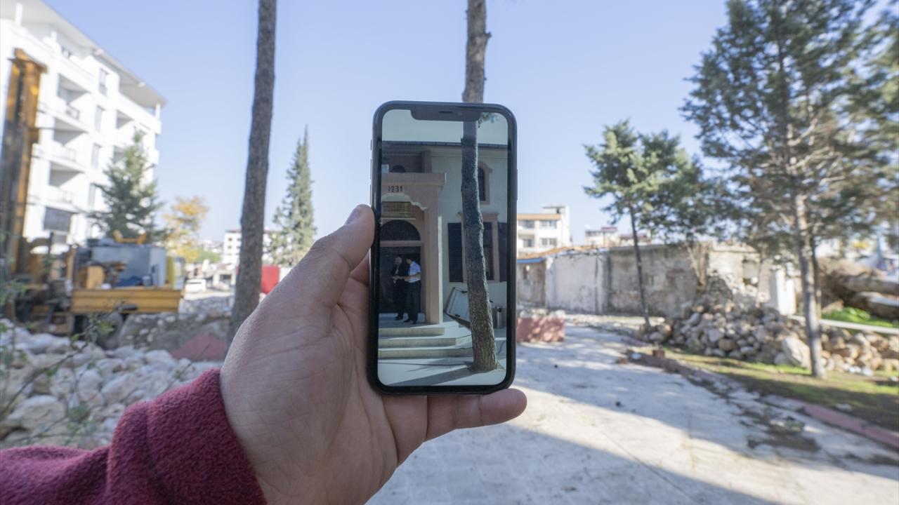 Cep telefonu ekranına bir bölümü yansıtılan depremden önceki fotoğrafların, aynı açıdan geniş bir kadraj içerisinde yeniden çekilmesiyle oluşturulan çalışmada, tarihi yapı ve simgelerin hasar almadan önceki ve güncel durumları aynı karede yer aldı.
