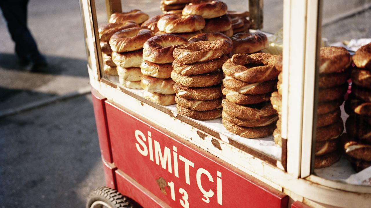 Sokak lezzetleri arasında en bilineni simit. Simit, üzeri susamla kaplı bir ürün. Tek başına veya peynir ve bir fincan çay ile yenebilir.
