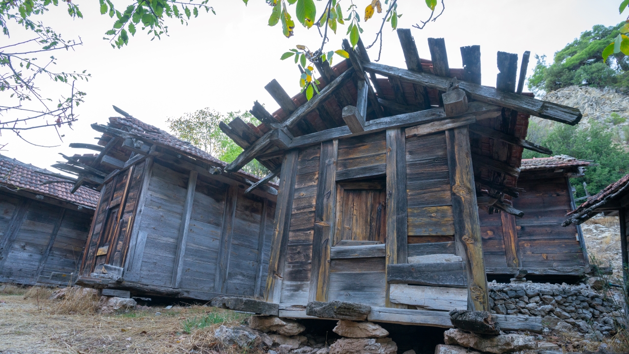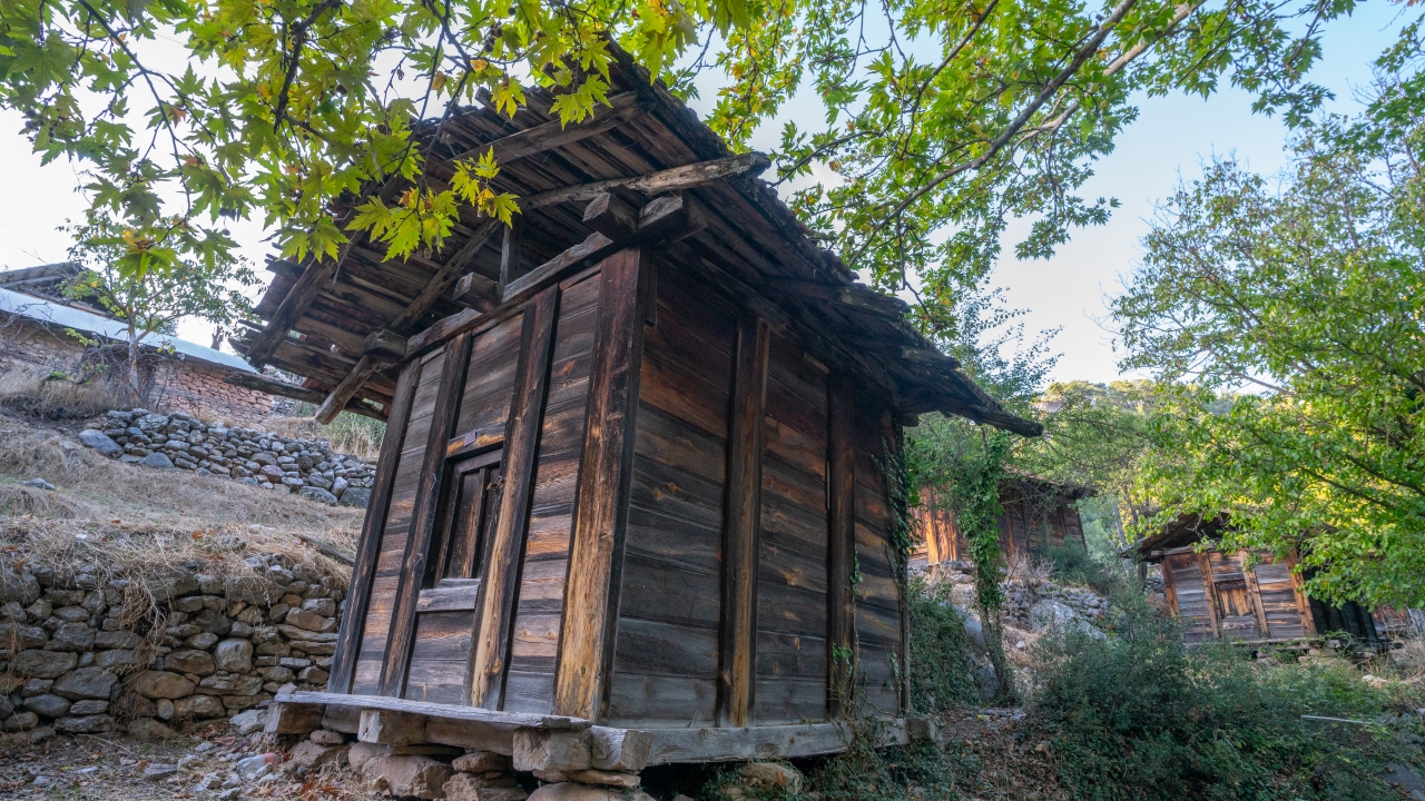 Sedir ağacından geçme yöntemiyle çivi kullanılmadan yapılan ambarlar 2013 yılında koruma altına alınmış.