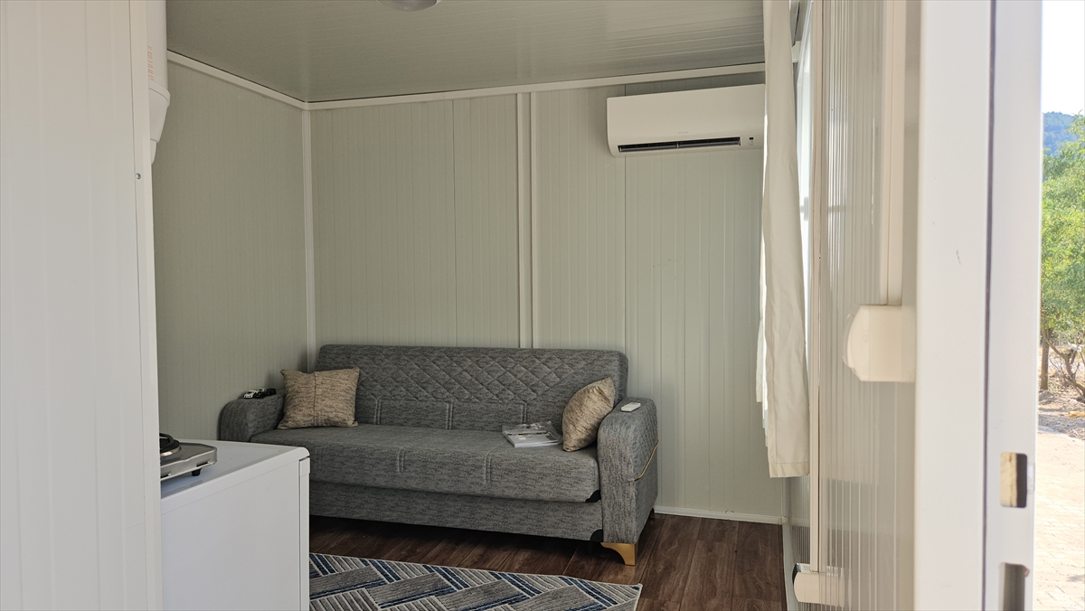 İçerisinde klima, buzdolabı, ranza, yatak, halı, nevresim takımı, battaniye, mutfak seti, set üstü ocak ve termosifon gibi temel ihtiyaç malzemelerinin bulunduğu konteynerlerde barınan vatandaşlardan Hüsna Hanım, Kertil Mahallesi`nde depremi şiddetli şekilde hissettiklerini söyledi.
